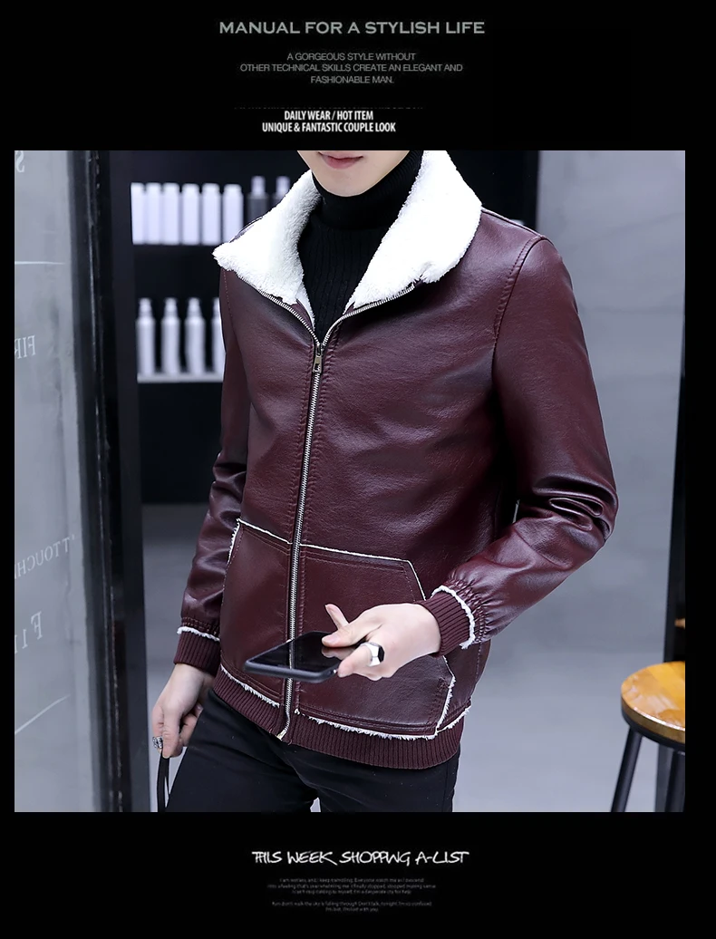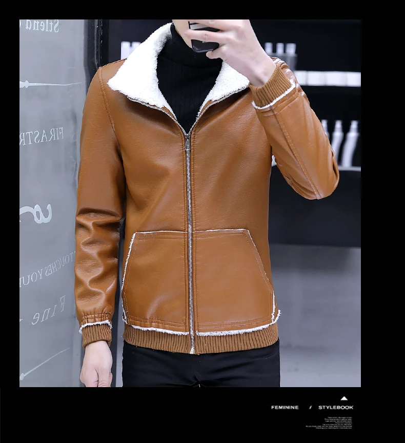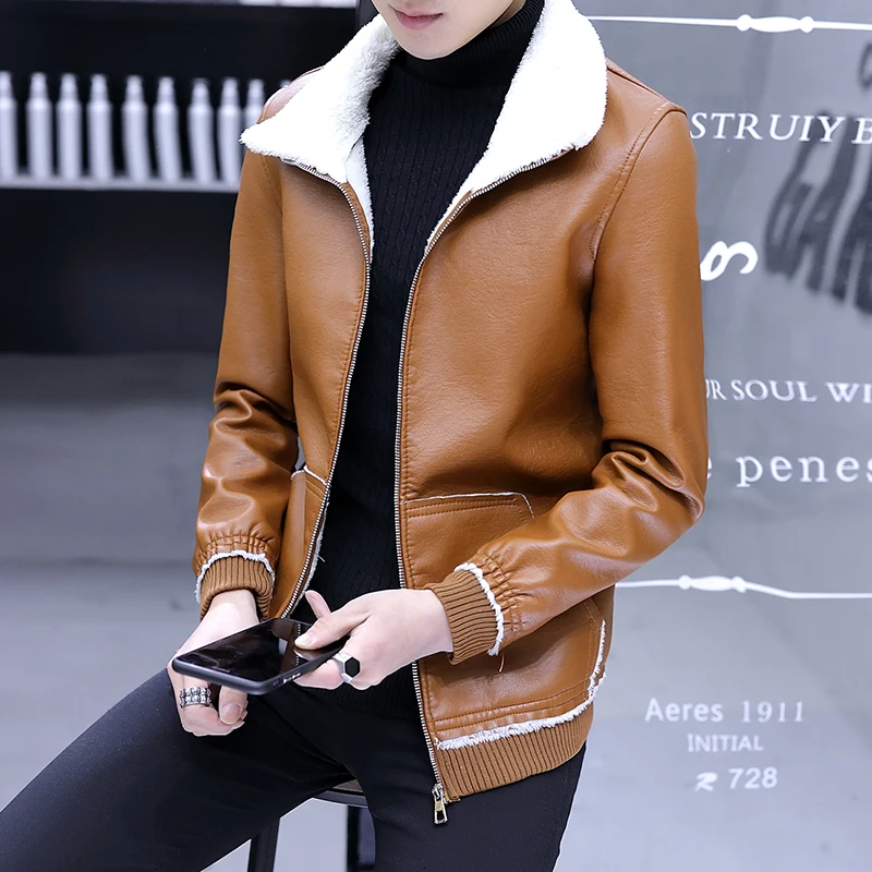 Мужская кожаная куртка с воротником-стойкой, на осеньзиму