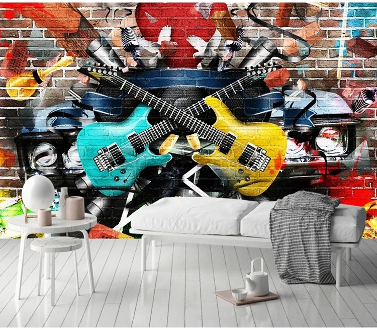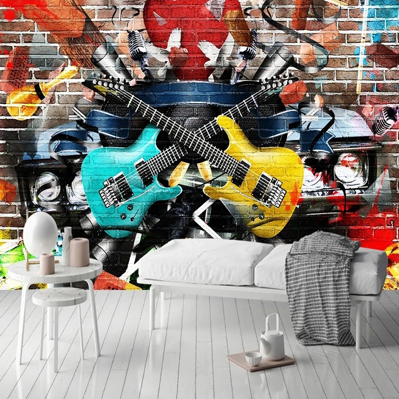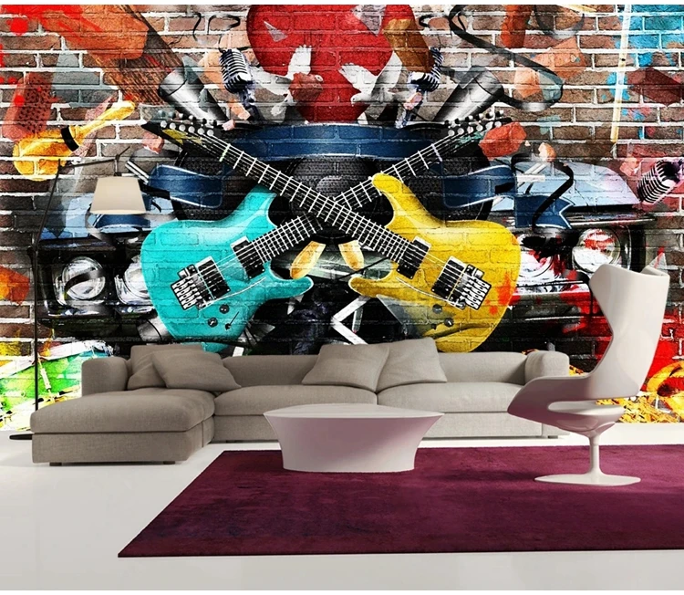 Современный художественный Декор фото фрески пользовательские обои граффити гитара музыкальный инструмент внутреннее украшение настенные бумаги фон 3D
