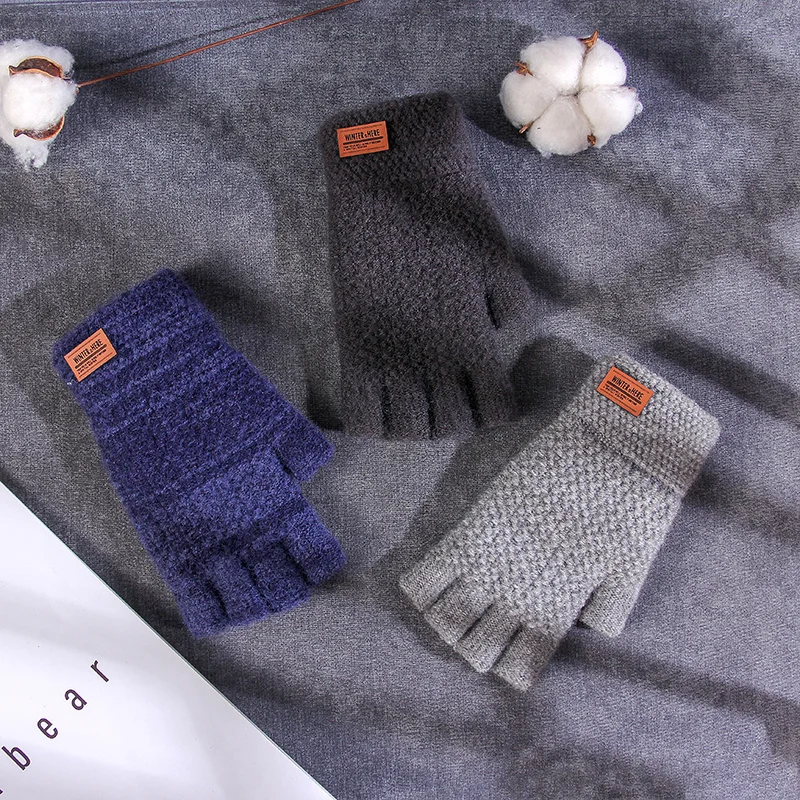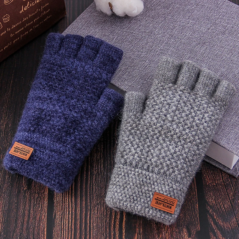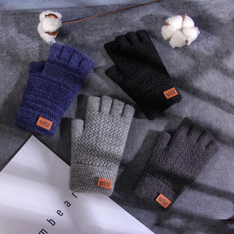 Зимние перчатки без пальцев для мужчин, вязаные перчатки с открытым...