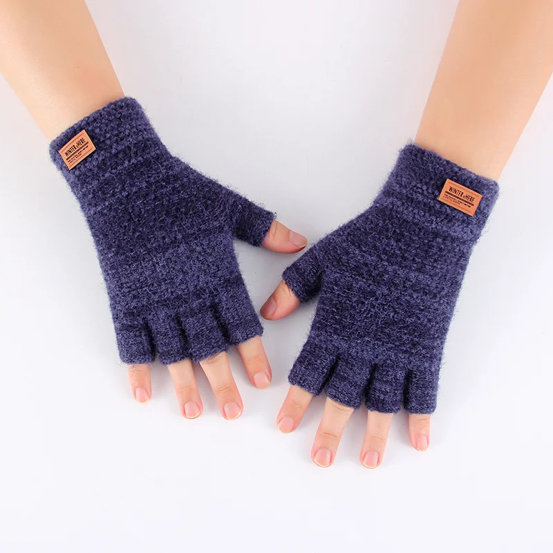 Вязаные перчатки без пальцев зимние плотные теплые перчатки для сенсорного экрана унисекс уличные эластичные теплые велосипедные перчатки без пальцев