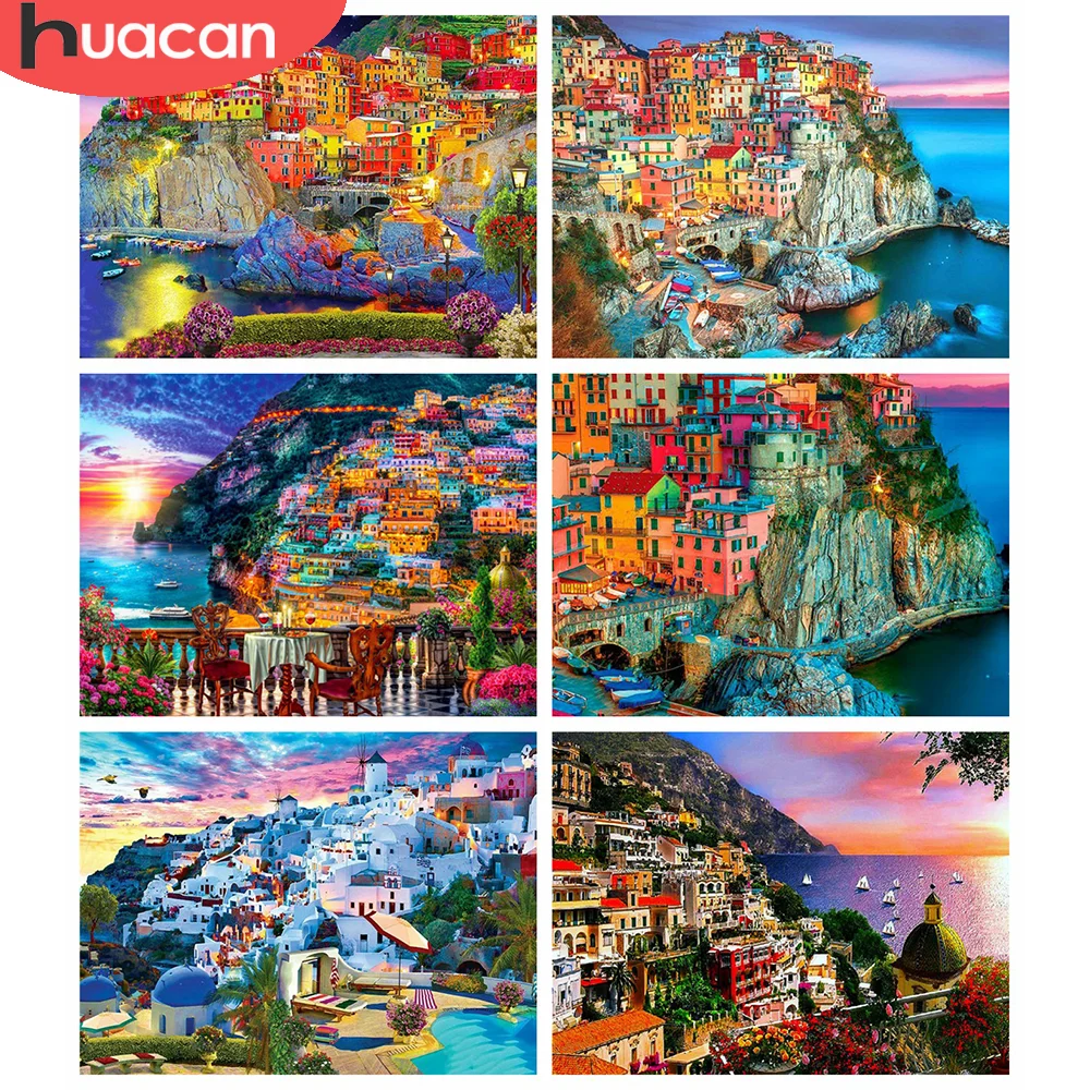Алмазная 5d мозаика HUACAN, вышивка в виде города, полная стразы, украшение для дома