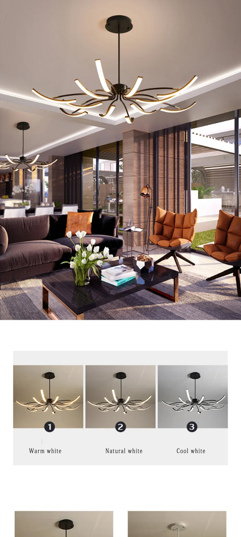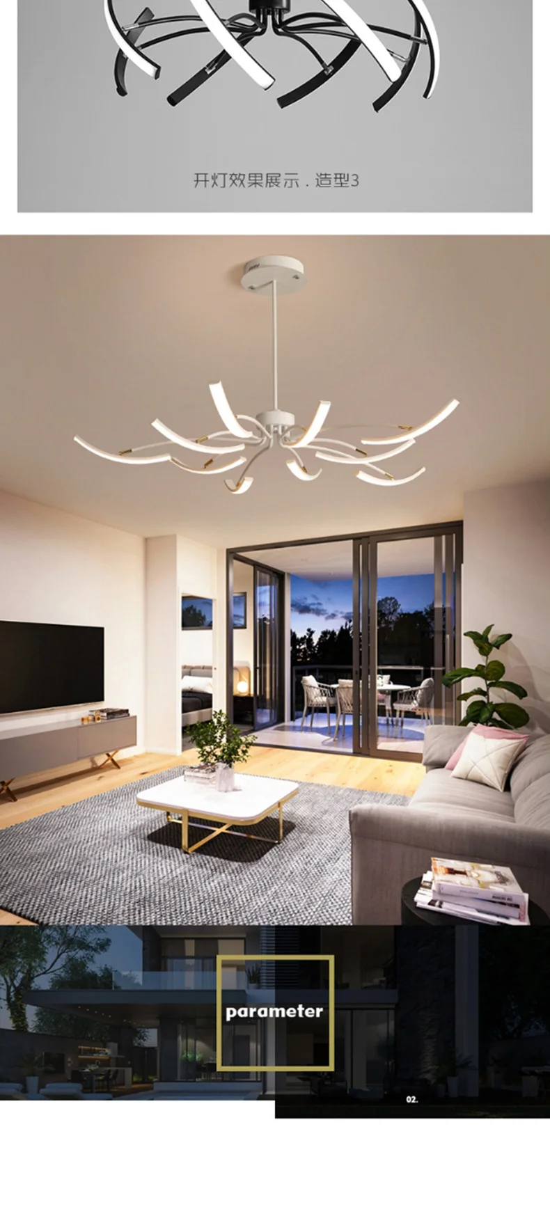 Современная светодиодная люстра черного и белого цветов, приглушаем...