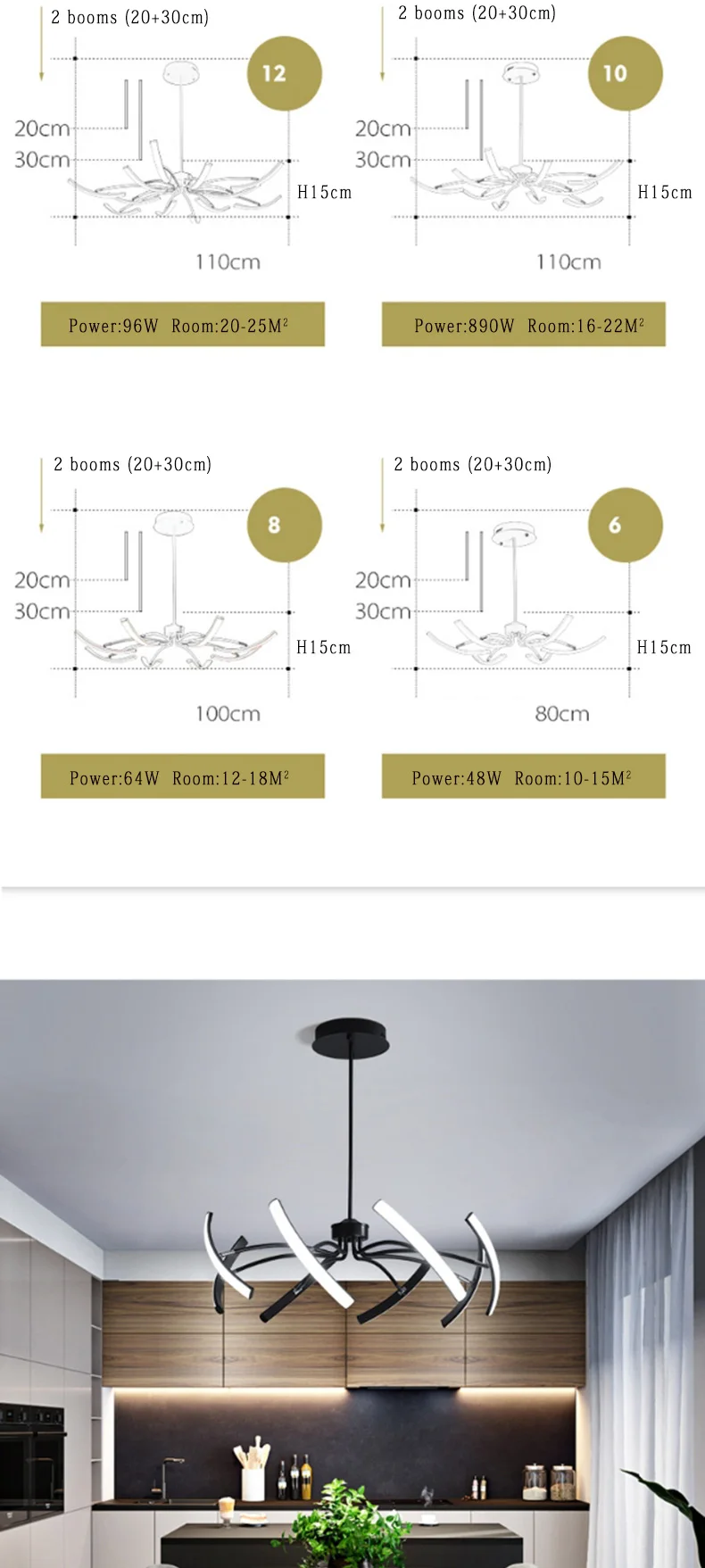 Современная светодиодная люстра MDWELL, матовая, чернаябелая, регул...