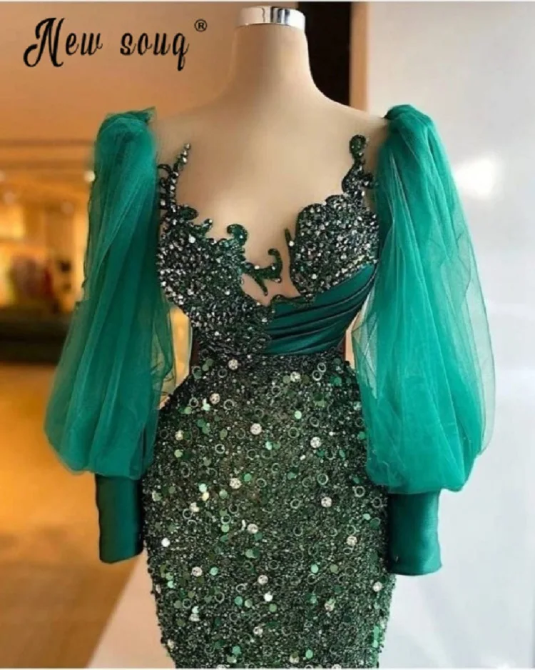 Изумрудно-Зеленая возлюбленная Русалка Вечер платье арабское, с длинными рукавами Формальные Выпускные платья для женщин знаменитости красный ковер платья