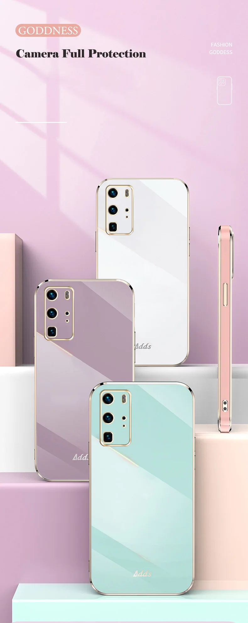 Квадратный глянцевый чехол с покрытием для Huawei P30 P40 P20 Pro Lite, мягкий чехол из ТПУ для Huawei Nova 3 3i 4 5 7 8 Mate 10 40 30 20 Pro, чехол