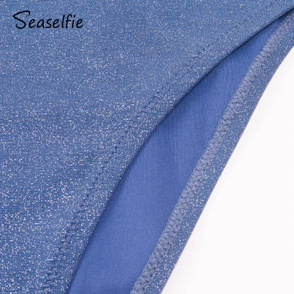 SEASELFIE блестящий синий плетеный сзади Цельный купальник для женщин, сексуальный женский купальник, 2022 пляжный купальный костюм, пляжная одежда