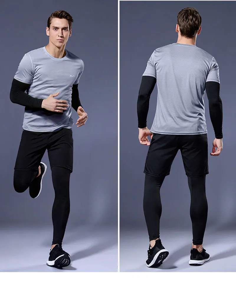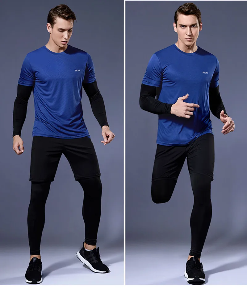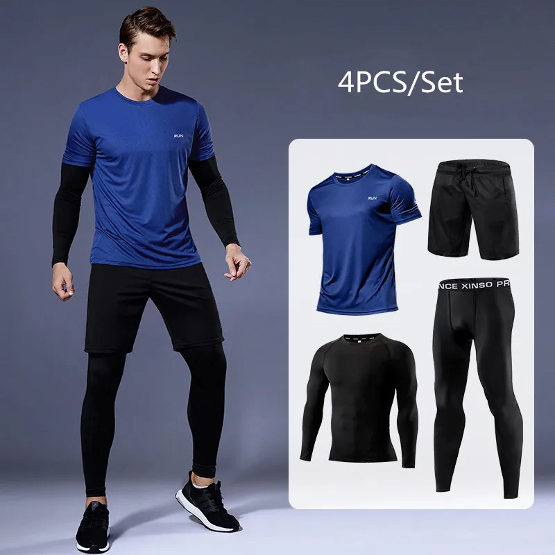 Мужской компрессионный костюм 2-4 шт.компл. костюм для бега уличная одежда для спортзала спортивная одежда тренировочный фитнес спортивный костюм мужской костюм