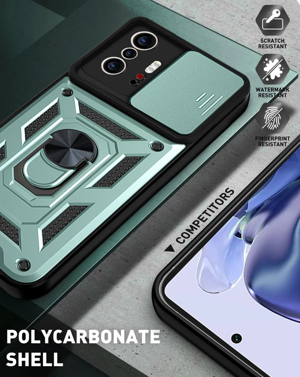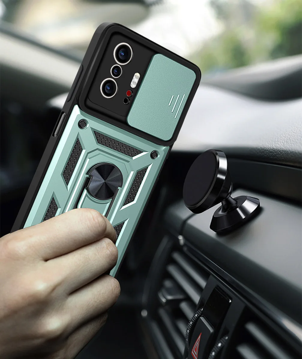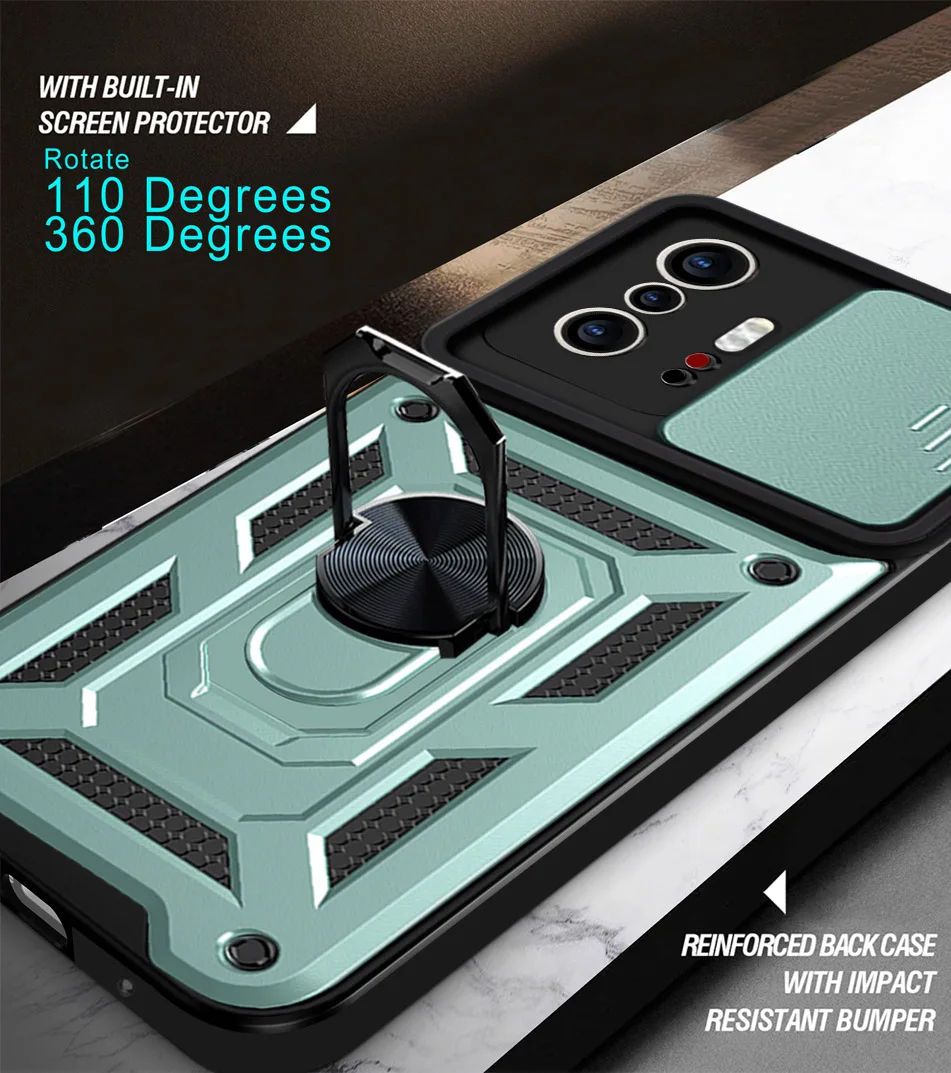 Модный противоударный армированный чехол с окошком для телефона Xiaomi 11T PRO Прочный с подставкой-кольцом защита от падения поликарбонатный чехол