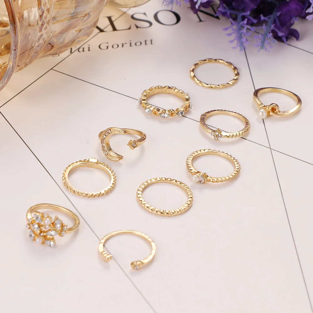 Женские кольца с Луной и звездами, комплект из колец золотистого цвета, аксессуары для девушек