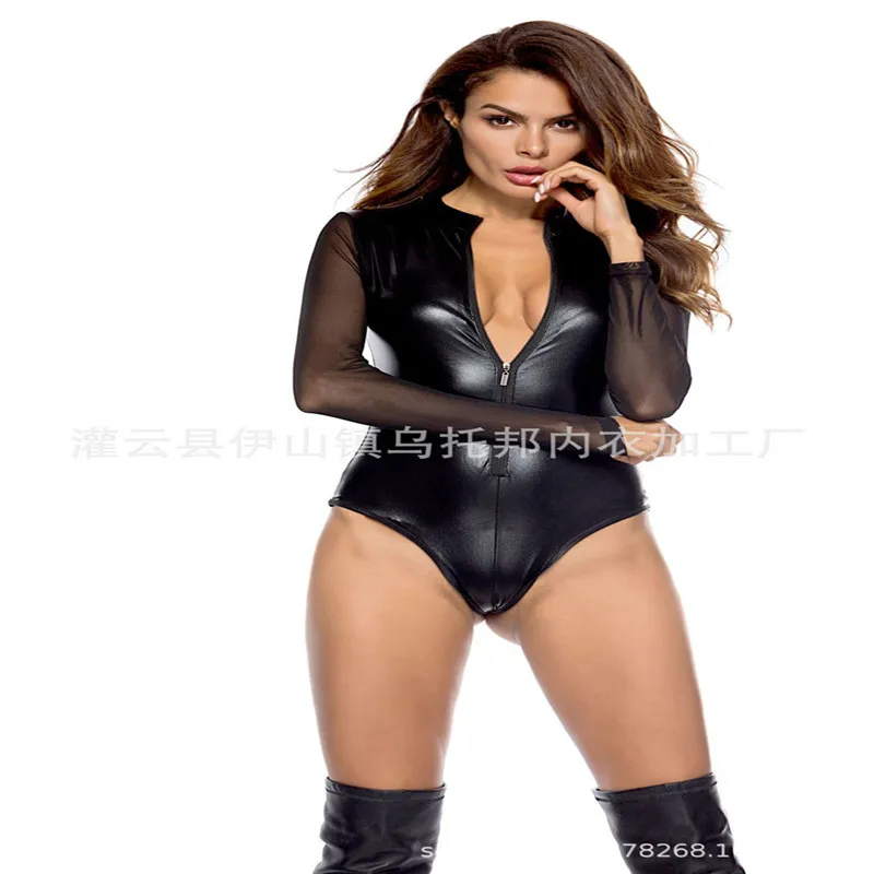 Женский латексный комбинезон, сексуальное кожаное нижнее белье, три...