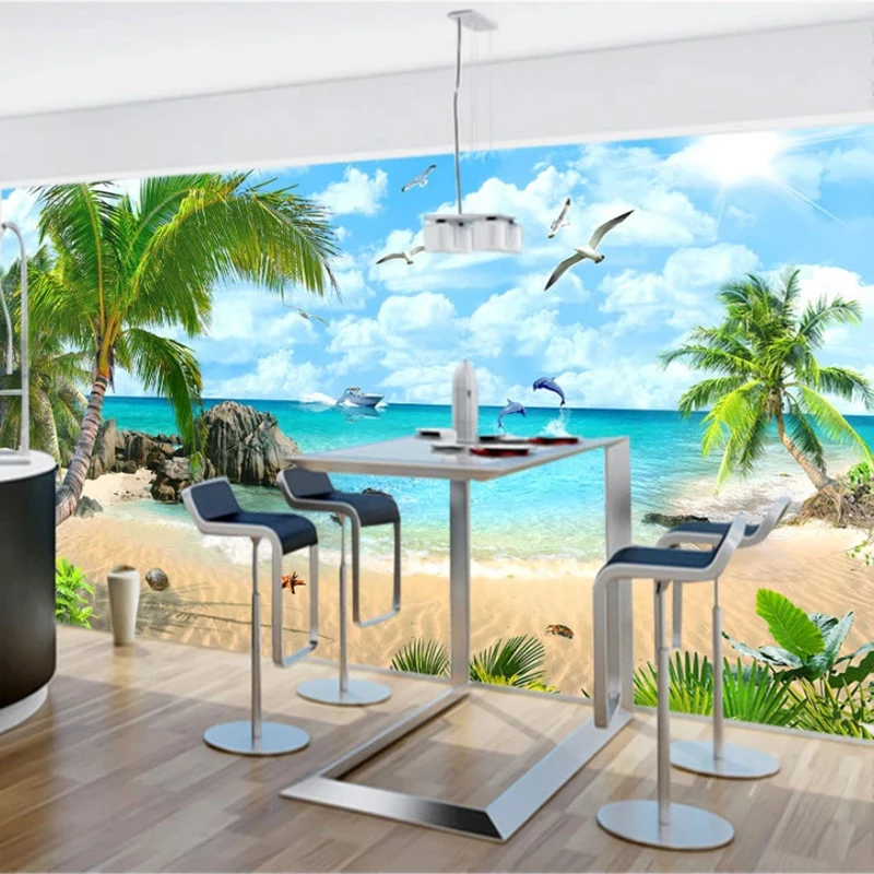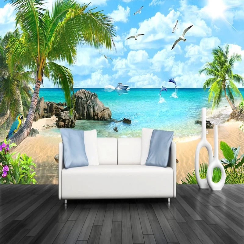Фотообои на заказ, 3D Пляжный Пейзаж, фон для телевизора, Настенный дизайн, гостиная, настенное украшение, картина, обои для стен спальни