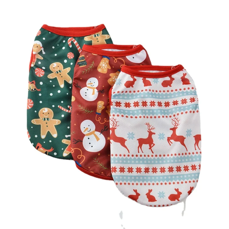 Дышащий сетчатый жилет для домашних животных, футболка с мультяшным принтом для кошек и собак, тонкая Рождественская Одежда для собак, удобная весенняя одежда для маленьких собак