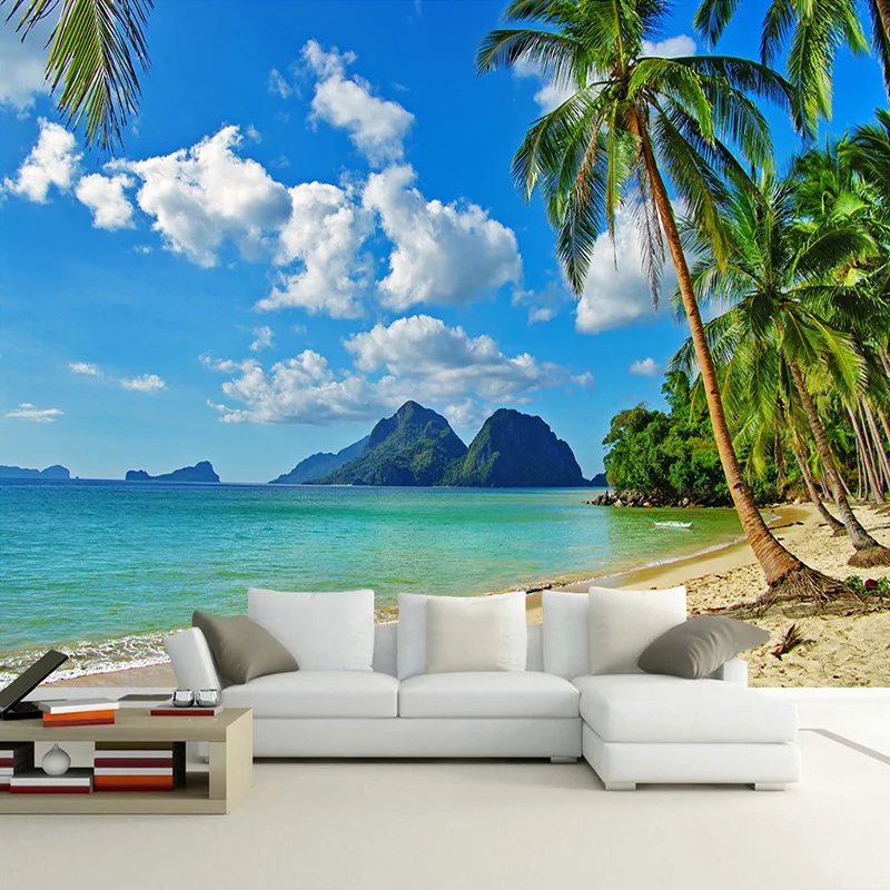 Пользовательские 3D обои фрески голубое небо белые облака морской остров пляж кокосовое дерево Пейзаж Фото Фреска Гостиная Спальня Декор