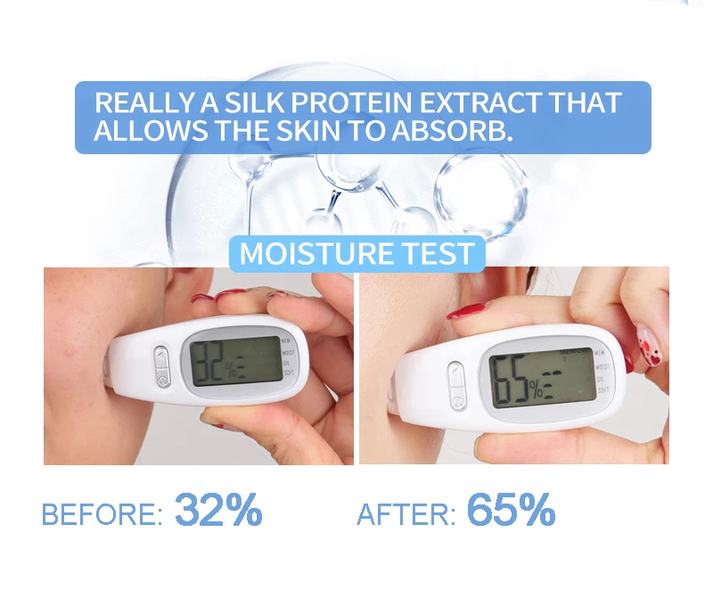 ▶Увлажнение▶Увлажняющий▶Возрастная защита1. Обогащен шелковым белком, известный серицин, сохраняет увлажняющие, увлажняющие и возрастные свойства.2. Шелковые экстракты легко и эффективно впитываются глубоко в кожу, поддерживая ее на оптимальном уровне гидратации, а также позволяя мощным антиоксидантам и аминокислотам помочь репaircells, способствовать регенерации клеток, И делает кожу более упругой и упругой.
