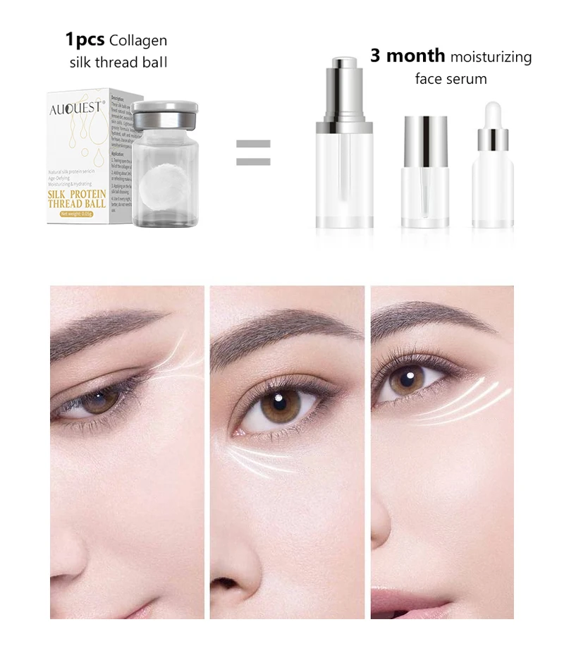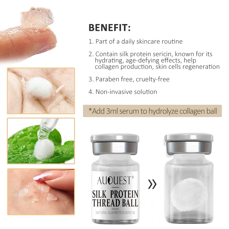 AuQuest шелковая протеиновая нить, шаровая коллагеновая Сыворотка для лица, гиалуроновая кислота, увлажняющий крем против морщин, укрепляющий гидролизованный шелк, уход за кожей