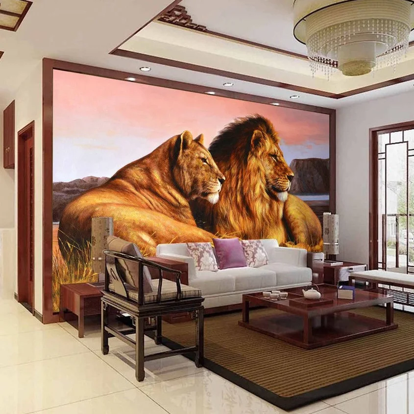 Пользовательская фотография настенная бумага африканская прерия Лев гостиная спальня фон настенная бумага Декор Живопись Животные настенное 3D