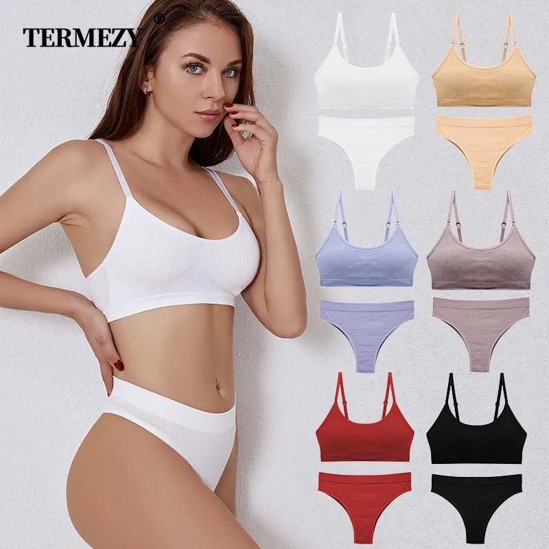 Женский бесшовный Комплект трусов TERMEZY, хлопковый топ с заниженной талией и стринги, мягкое нижнее белье для активного отдыха, комплект нижнего белья с бюстгальтером для фитнеса