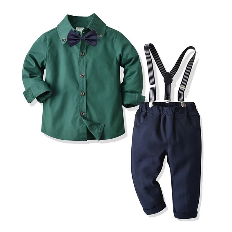 Детский комплект одежды для маленьких мальчиков, осень-весна, рубашка с длинными рукавами и галстуком-бабочкой + брюки на подтяжках, комплект из 2 предметов, детский деловой костюм джентльмена