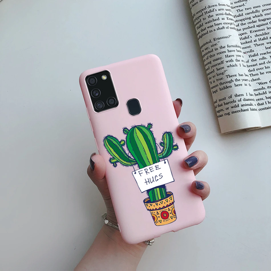 Чехол для телефона Samsung Galaxy A21s, мультяшная пара, мягкая тонкая задняя крышка с милым КАКТУСОМ, авокадо для Samsung A21s, A217, A 21 s, чехол с котом
