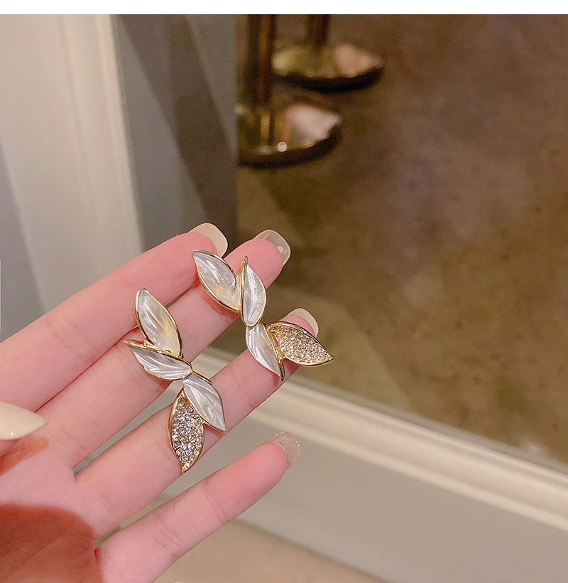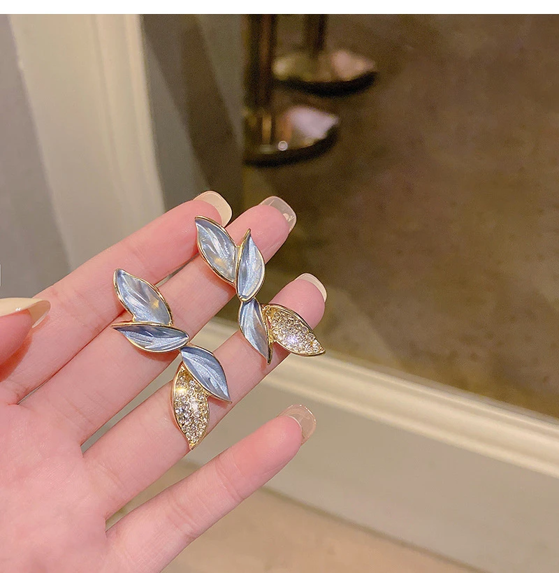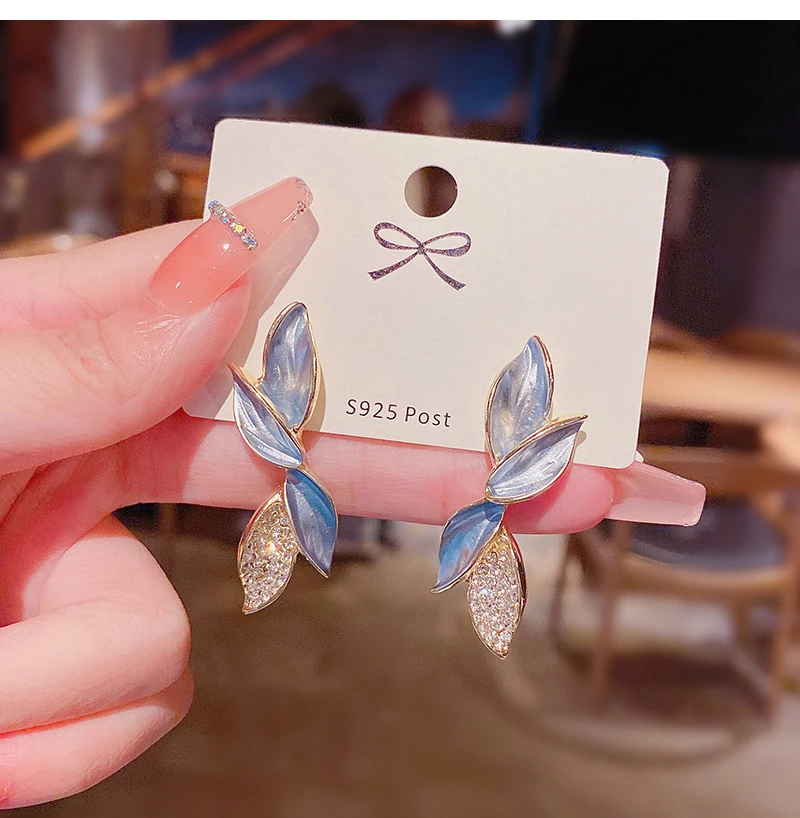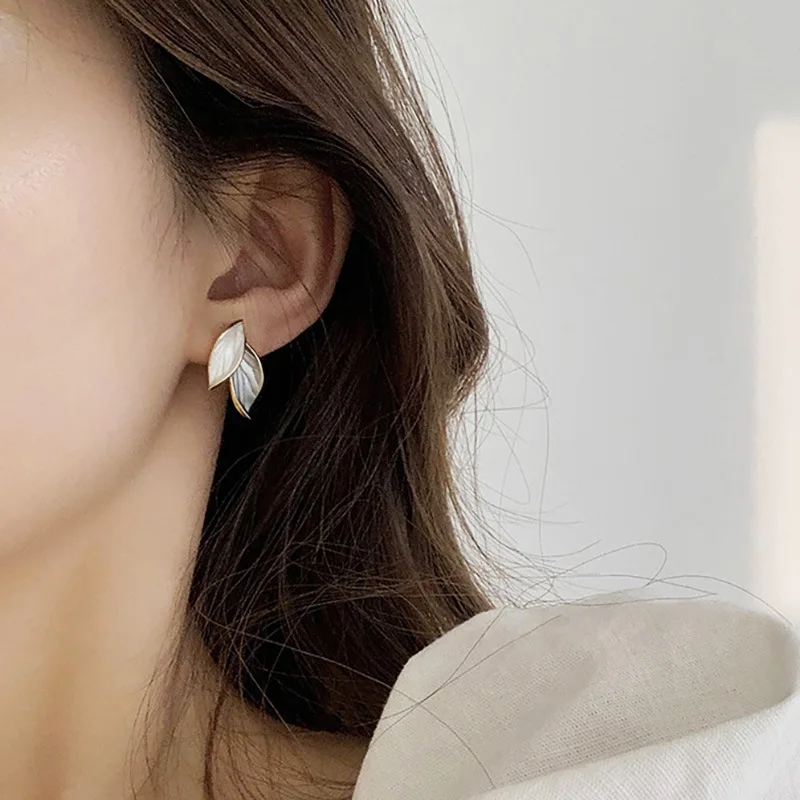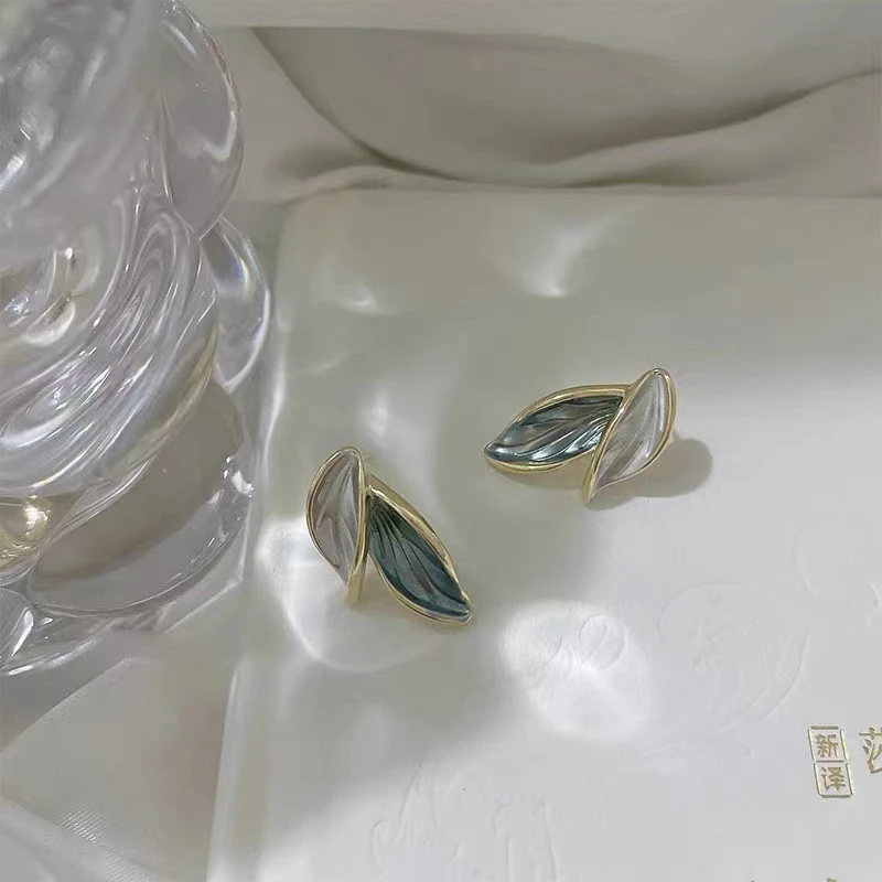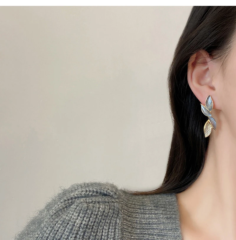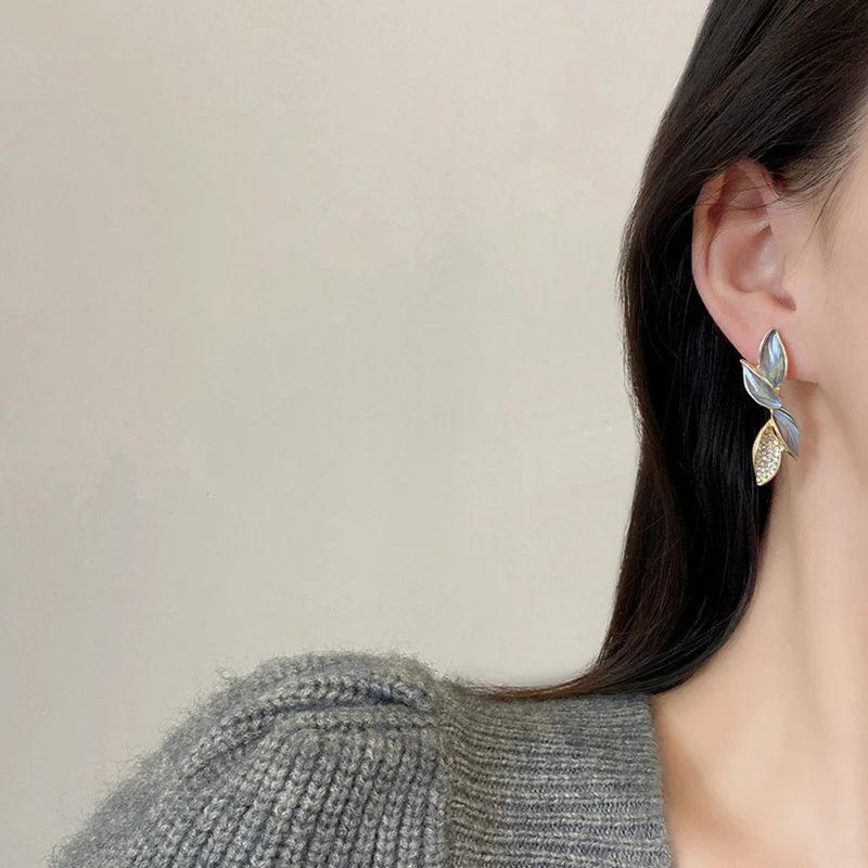 Женские серьги-гвоздики в виде листьев, серые серьги-гвоздики с листьями
