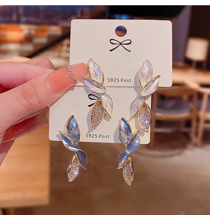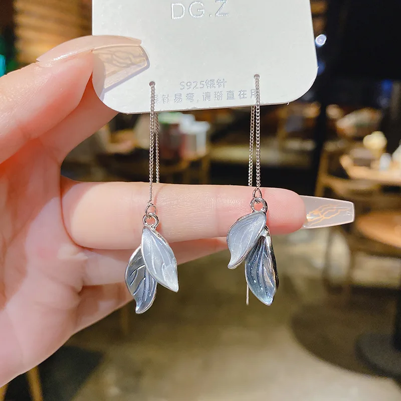 Длинные висячие серьги с листьями для женщин, элегантные висячие ук...