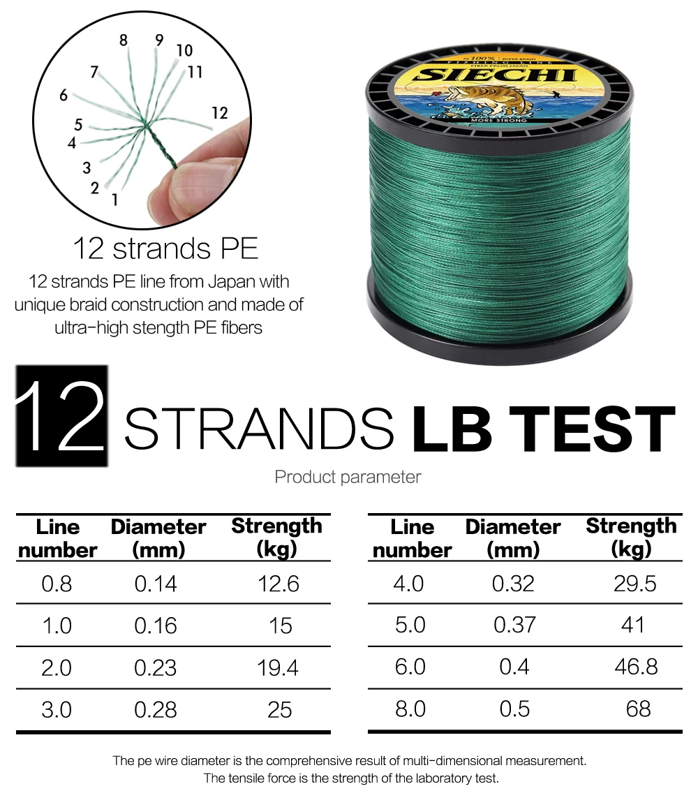 Чрезвычайно высокая прочность на диаметр.Потрясающая тонкая и чувствительная высокая прочность и долговечность.Сопротивляется «копанию» на катушке. ① Передовая широкоугольная технология-гладкая супер линия.② Улучшенная Цветостойкость.③ Длинное и быстрое литье-более гладкое, чем когда-либо.④ Супер чувствительность-мгновенное ощущение структуры и ударов.⑤ Исключительная прочность и прочностьHi доступны цвета Hi-vis и Low-vis. 【Детали продукта 】Бренд: SIECHIМодель: 4 & 8 & 12 прядей плетеной линииМетров: 300 м 500 м 1000 мФорма: уровеньМатериал: плетеный проводПлавучесть: плавающий4 нити номер лески:1,0; 2,0; 3,0; 4,0; 5,0; 6,0; 8,0Параметры: 4 нитиНомер лески 1,0 #: 0,16mm / 20LB/8,5 кгНомер лески 2,0 #: 0,23mm / 30LB/12,9 кгНомер лески 3,0 #: 0,28 мм/38LB/16,4 кгНомер лески 4,0 #: 0,32mm / 43LB/19кгНомер лески 5,0 #: 0,37 мм/52 фунтов/22,8 кгНомер лески 6,0 #: 0,40mm / 65LB/27,5 кгНомер лески 8,0 #: 0,50 мм/83LB / 37 кг8 нитей номер лески:1,0; 2,0; 3,0; 4,0; 5,0; 6,0; 8,0Параметры: 8 нитейНомер лески 1,0 #: 0,16mm / 20LB/9,1 кгНомер лески 2,0 #: 0,23 мм/30 фунтов/13,6 кгНомер лески 3,0 #: 0,28 мм/40 фунтов/18,2 кгНомер лески 4,0 #: 0,32 мм/50 фунтов/22,7 кг12 нитей номер лески:1,0; 2,0; 3,0; 4,0; 5,0; 6,0; 8,0Параметры: 12 нитейНомер лески 1,0 #: 0,16 мм/33 фунта/15 кгНомер лески 2,0 #: 0,23 мм/42,7lb/19,4 кгНомер лески 3,0 #: 0,28mm / 55.1LB / 25 кгНомер лески 4,0 #: 0,32 мм/65 фунтов/29,5 кгНомер лески 5,0 #: 0,37 мм/90.3LB / 41 кгНомер линии 6,0 #: 0,4 мм/103LB/46,8 кгНомер лески 8,0 #: 0,5 мм/149,9 фунтов/68 кг[Список упаковки]1 шт. * леска【Примечание 】Номер линии не имеет диаметра, пожалуйста, внимательно проверьте таблицу и, пожалуйста, оставьте нам сообщение, если что-то запутанное, спасибо!