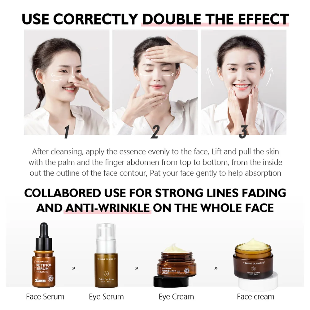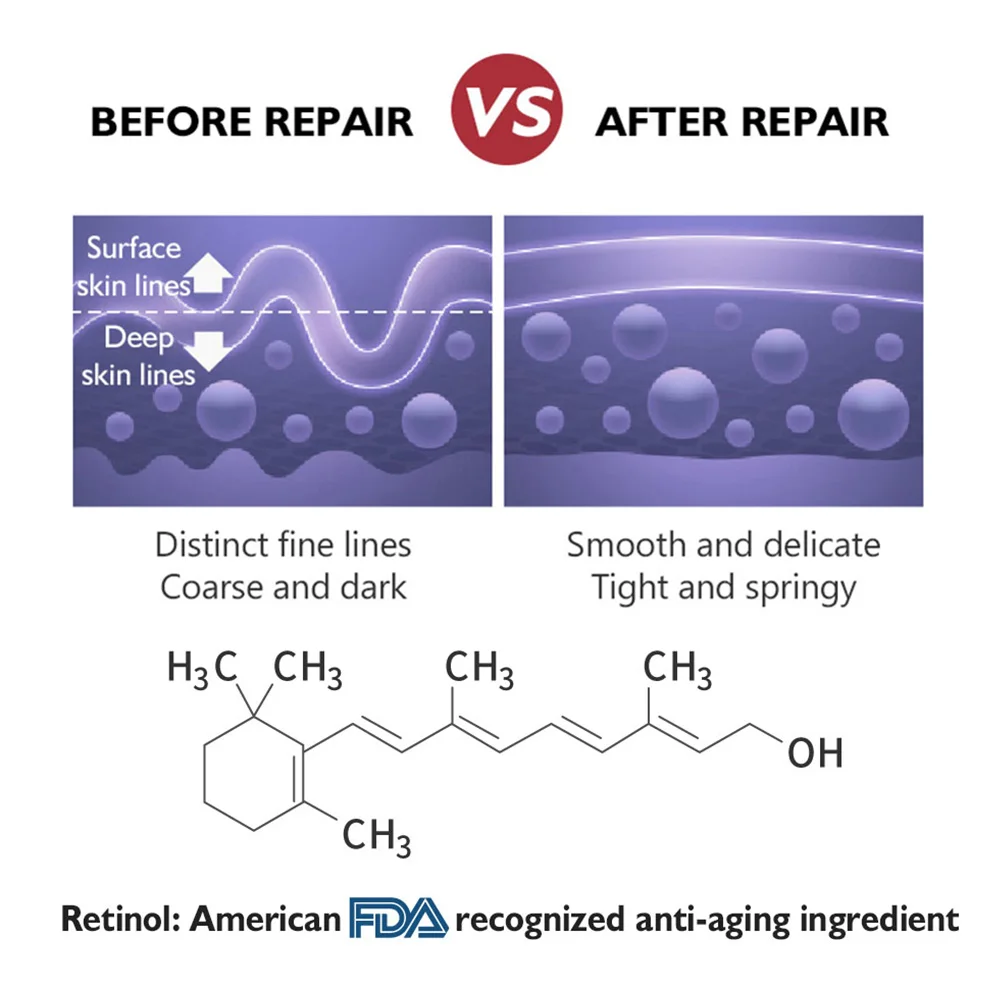 * 1. Ретинол с активным пептидным ацетиловым hexapeptide-8, двумя питательными ингредиентами, которые могут эффективно улучшить блеск кожи и зафиксировать влагу.