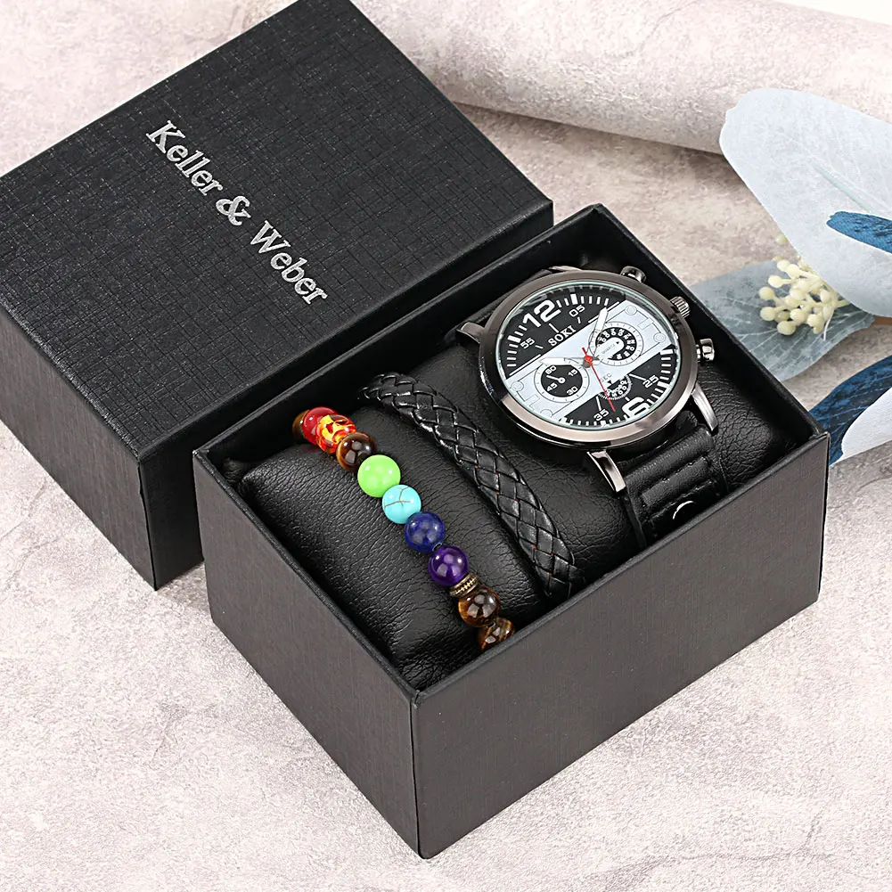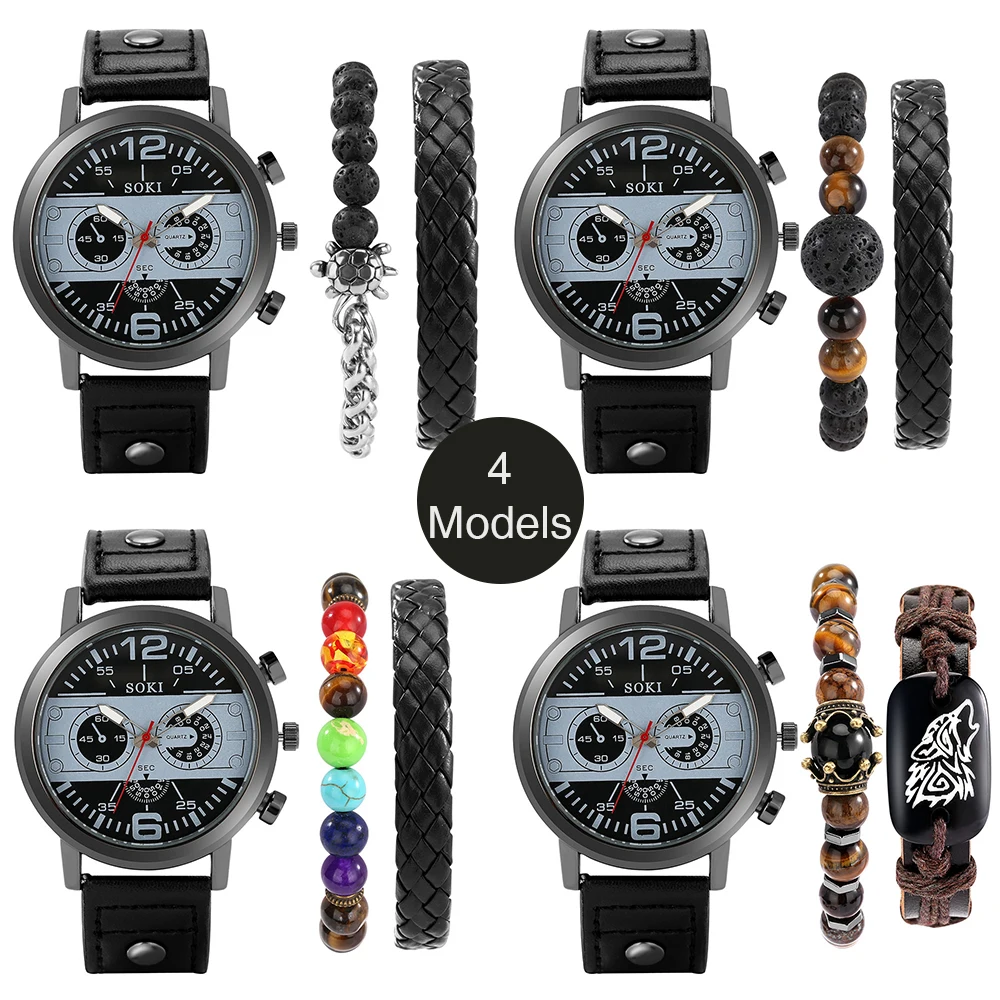 Модные мужские кварцевые наручные часы с браслетом из 2 шт., подарочный набор для мужчин, роскошные повседневные мужские часы, подарки для парня и мужа