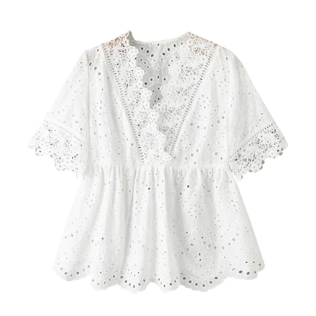 Женская Кружевная футболка с V-образным вырезом и коротким рукавом