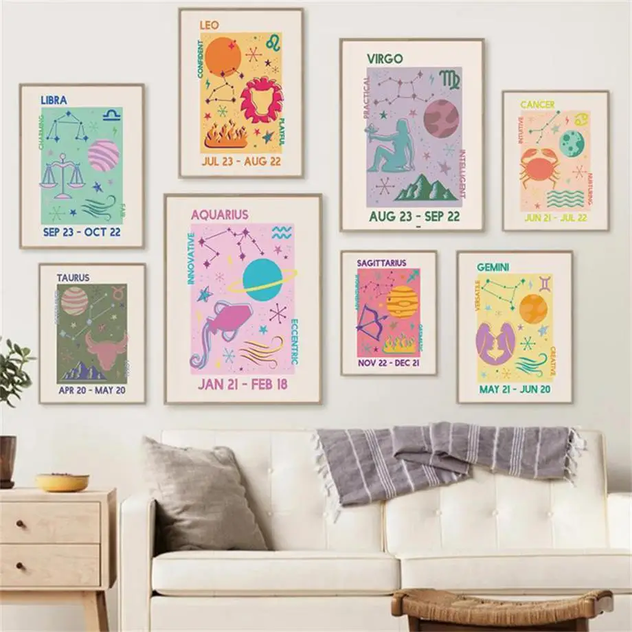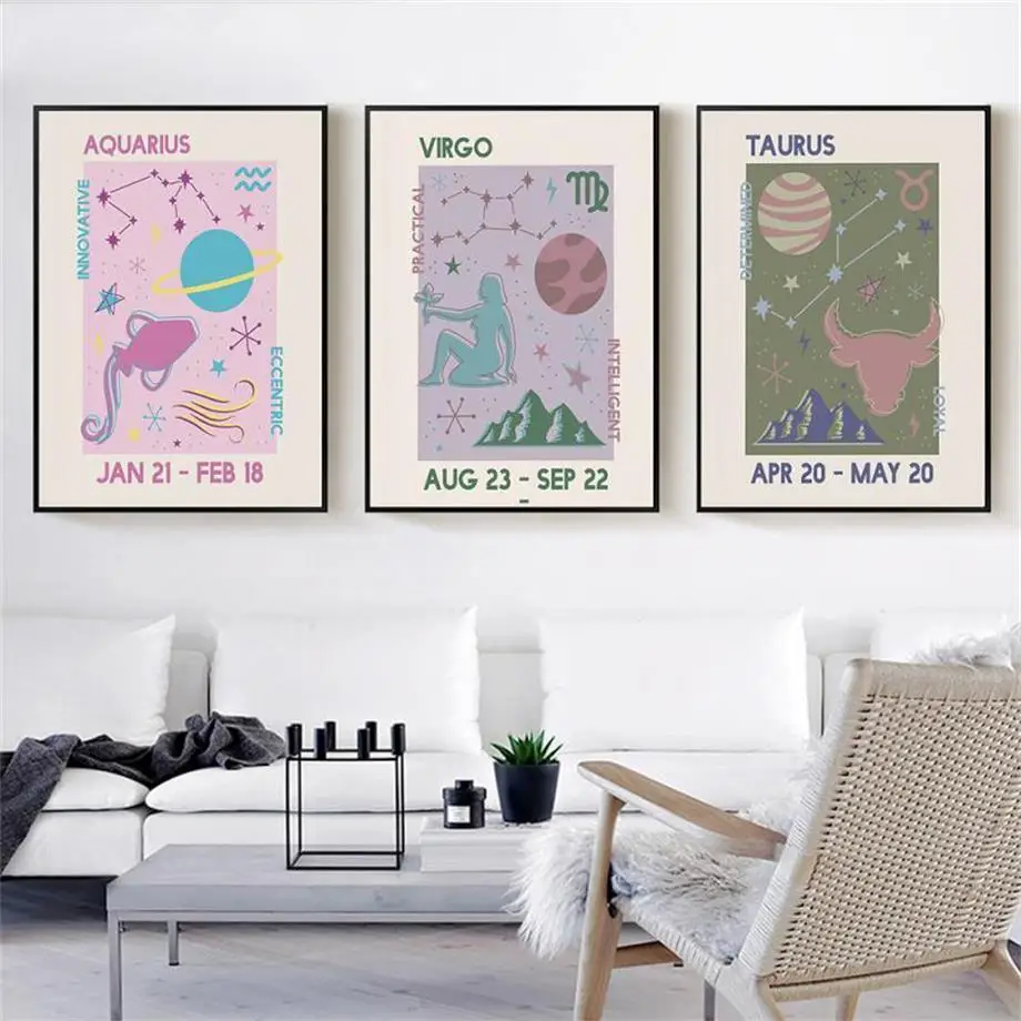 Астрологические зодиаки созвездия настенная Картина на холсте сканд...