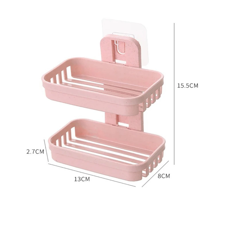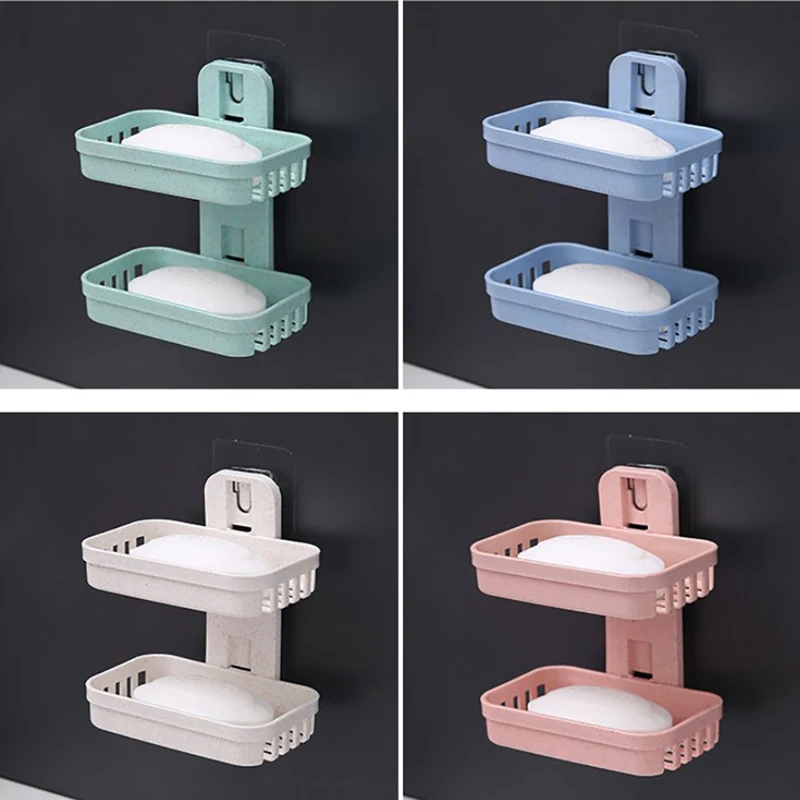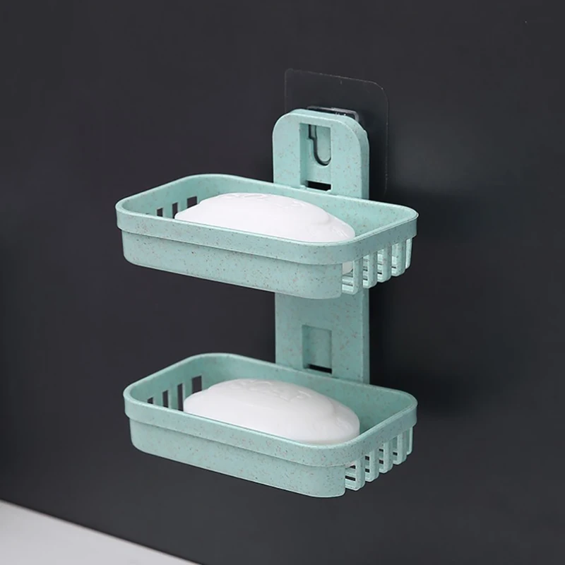 Настенный двухслойный держатель для мыла и посуды, без перфорации, ящик для слива, кухонная коробка для хранения губки, органайзер для ванной комнаты, полки
