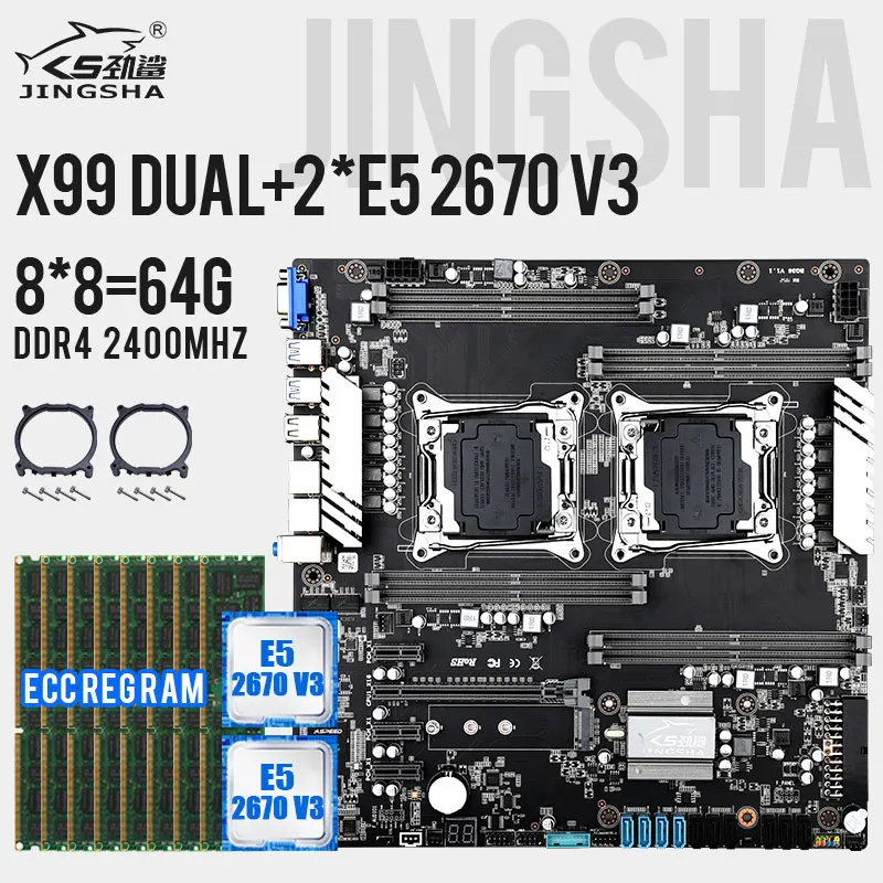 JINGSHA x99 материнская плата с двумя процессорами LGA 2011-3 с XEON E5 2670V3 и 8*8 ГБ = 64 Гб DDR4 ECC REG Memorry