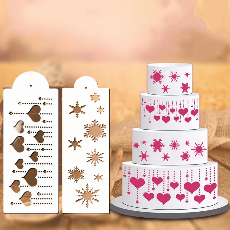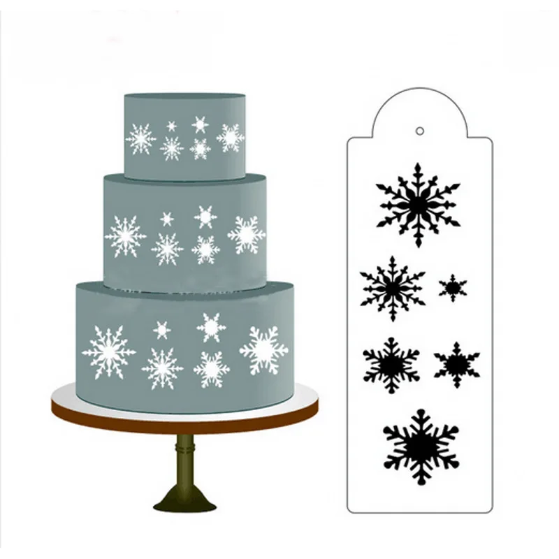 Трафареты для торта, рождественские шаблоны в виде сердца, снежинки, для украшения тортов, Цветочная помадка, сетка для выпечки