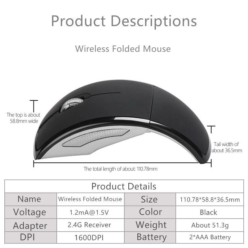Беспроводная складная мини-мышь, 2,4 ГГц, USB-приемник, оптическая эргономичная офисная мышь для ПК, ноутбука, игровая мышь Win7810XPVista