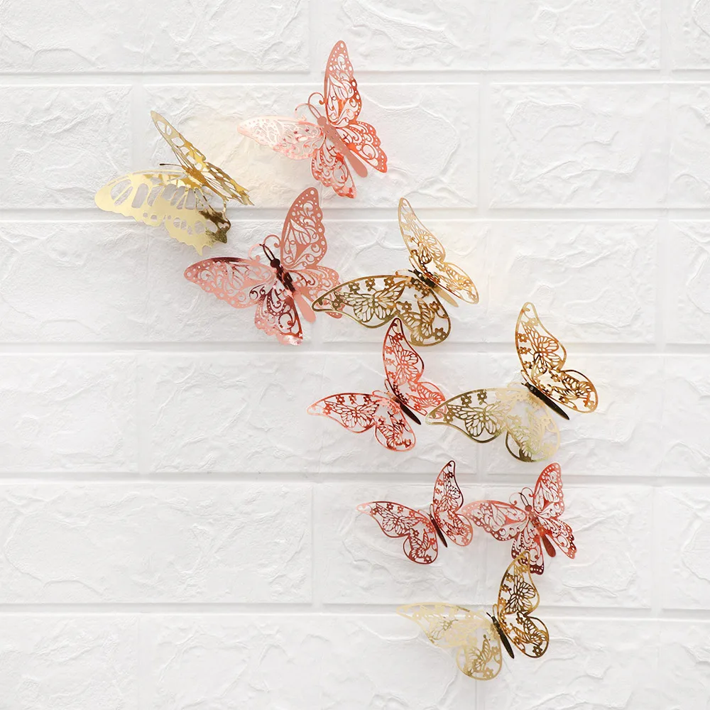 Декоративные принадлежности для вечеринок, домашнее украшение, наклейки на стену в виде бабочки, 3D полые золотые, серебряные, розовые, золотые, марионы, наклейки