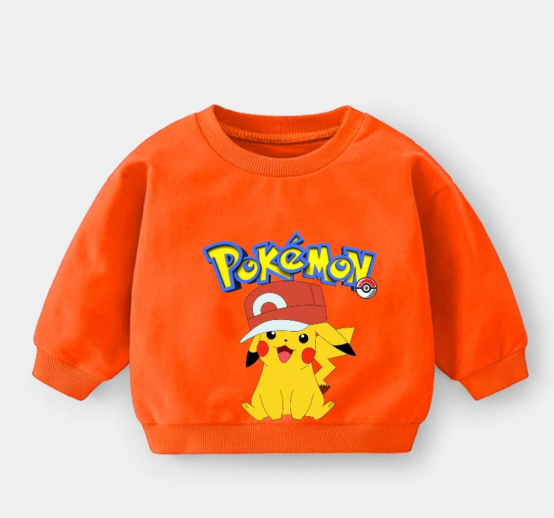 Хлопковая толстовка для мальчиков с покемоном, Пикачу плюс, бархатная Детская толстовка, мягкая и дышащая детская одежда, подходит для осенизимы