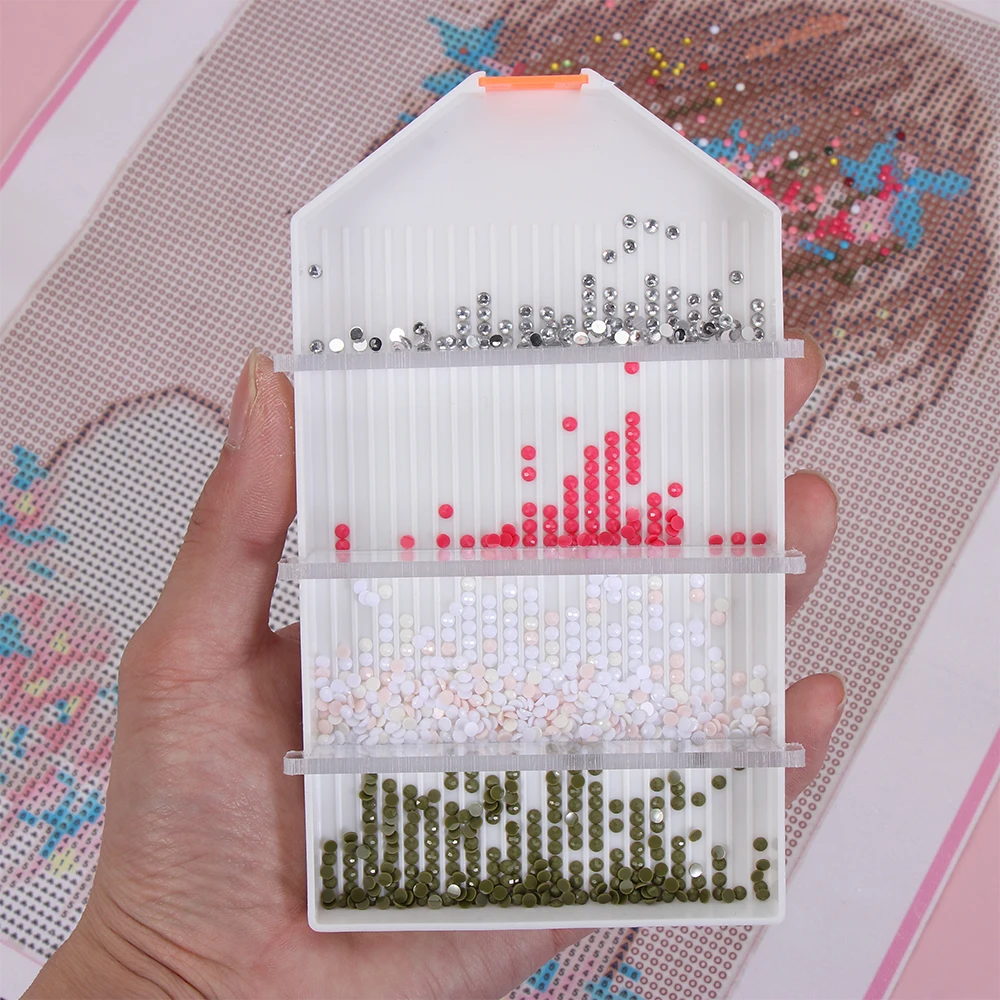 Дизайн открывания удобен и прост в использовании. После того как Алмазная картина закончена, крышку можно открыть, и алмазы можно вылить в ящик для хранения.