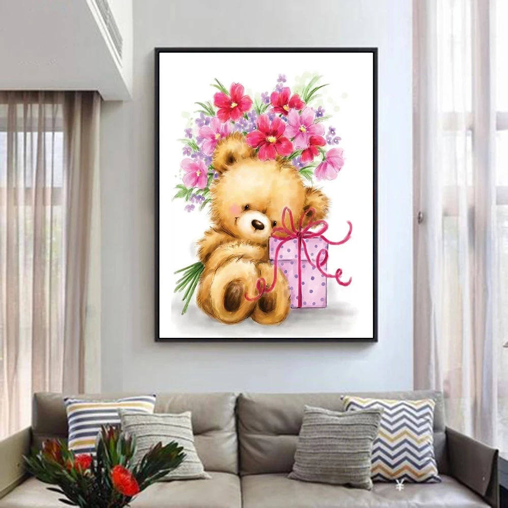 Набор для алмазной живописи AMY-Bear, 5d вышивка, вышивка крестиком, мультфильм, животное, цветок, мозаика, наклейка на стену, домашний декор