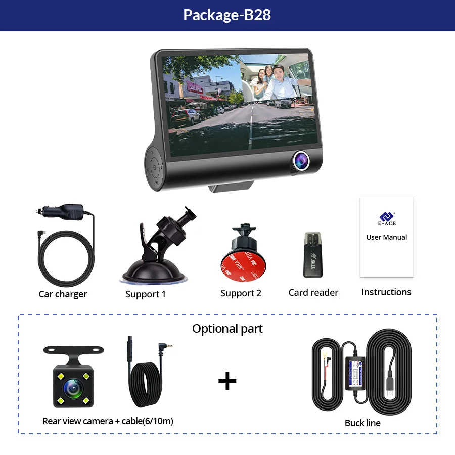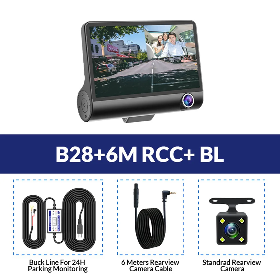 Фотокамера E-ACE B28 с 3 объективами, Автомобильный видеорегистратор 4,0 дюйма, видеорегистратор с двумя объективами, автоматический Регистратор, циклическая запись, поддержка камеры заднего вида, видеорегистраторы