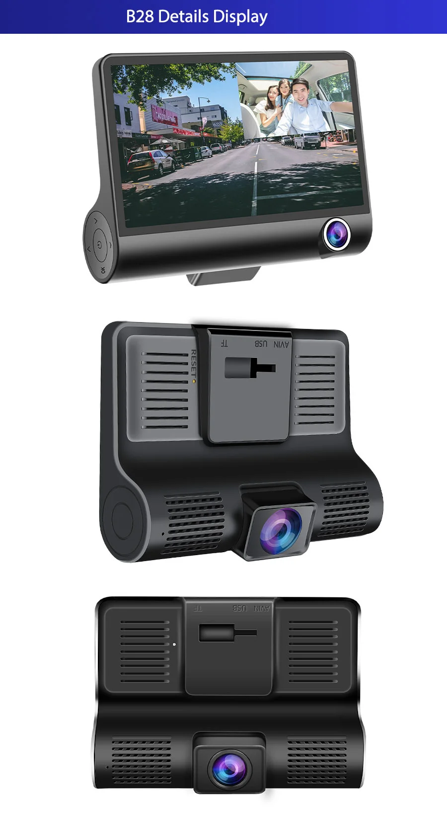 B28 Автомобильный видеорегистратор с 3 объективами камеры