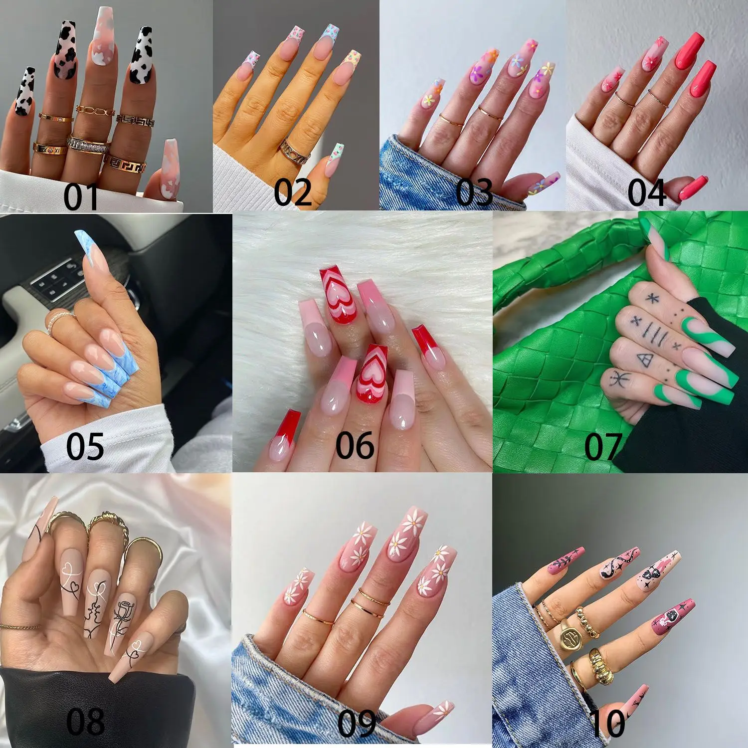 Накладные ногти с длинным гробным цветком, съемные накладные ногти ...