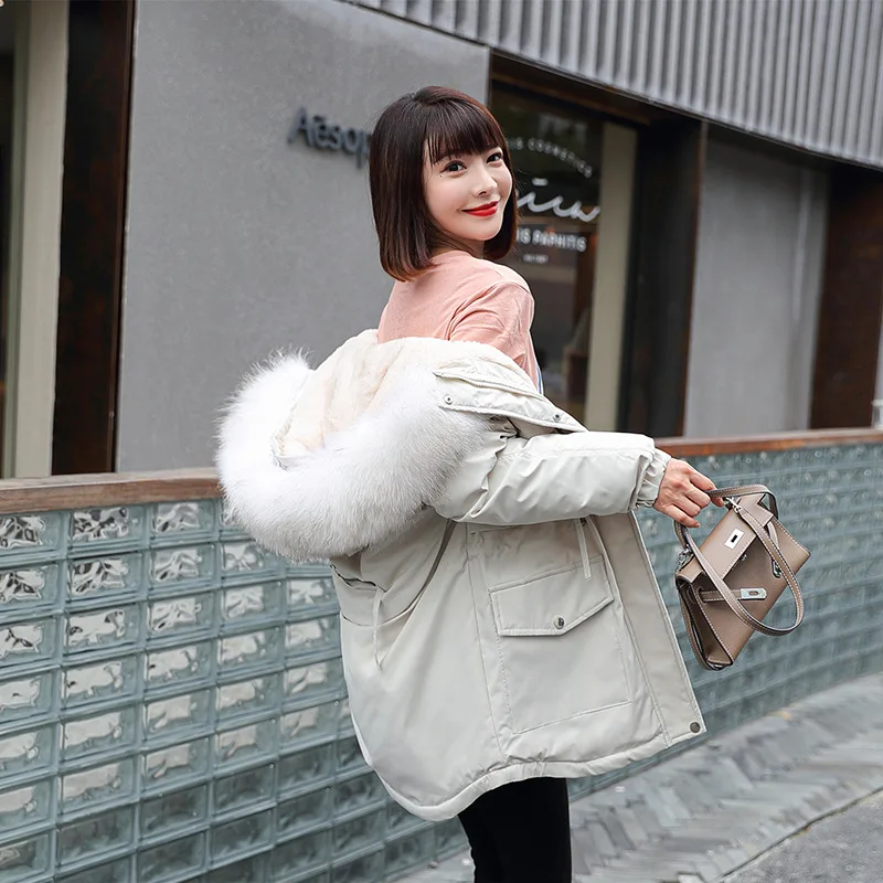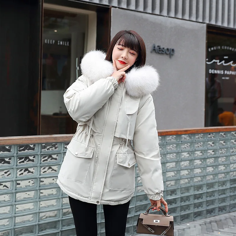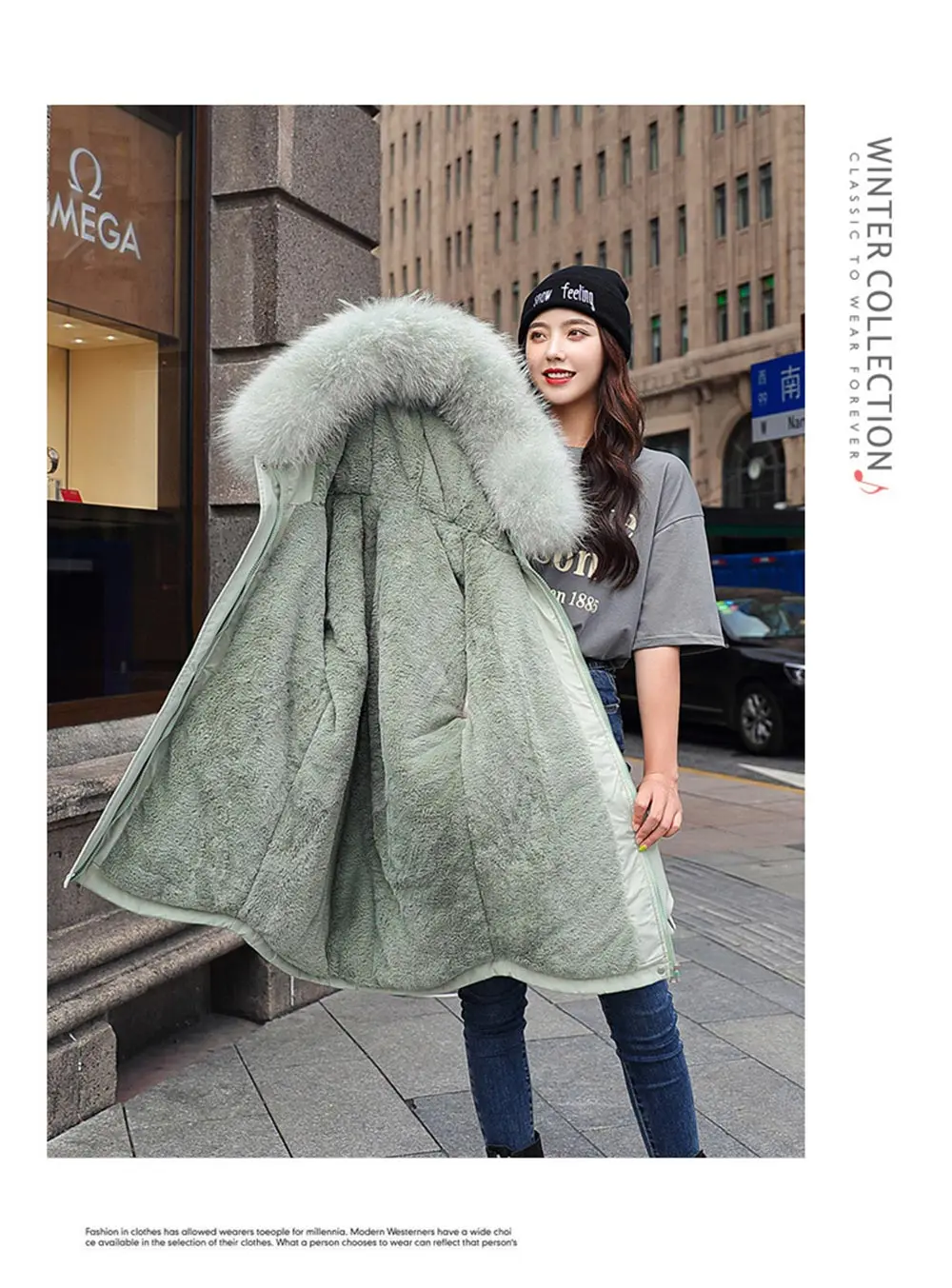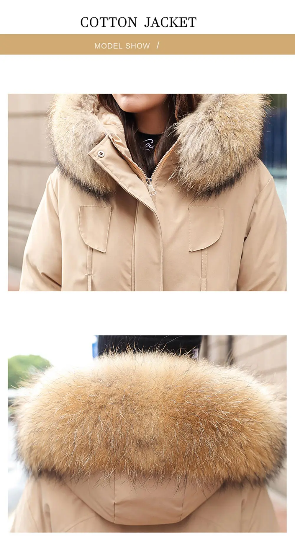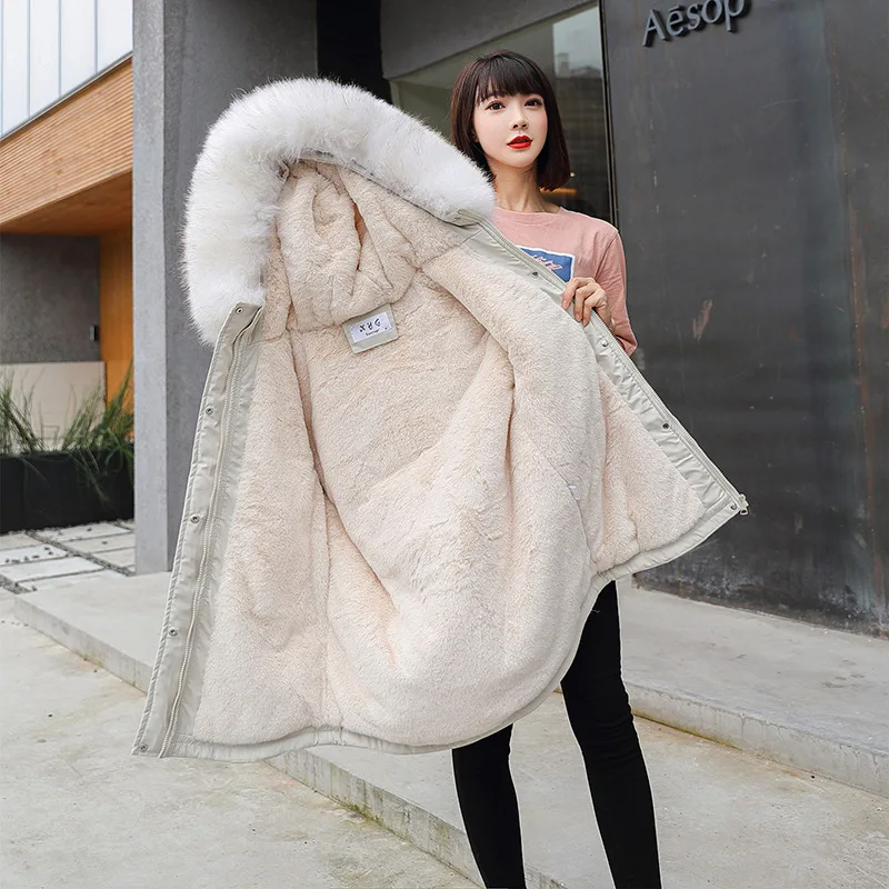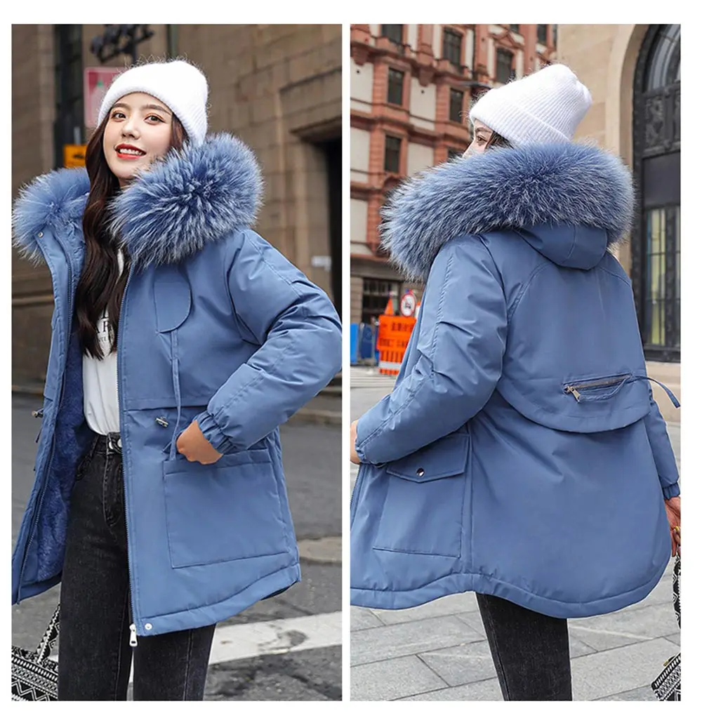 Женская парка с капюшоном и меховой подкладкой, теплая хлопковая парка с капюшоном, Повседневная зимняя одежда, 2021