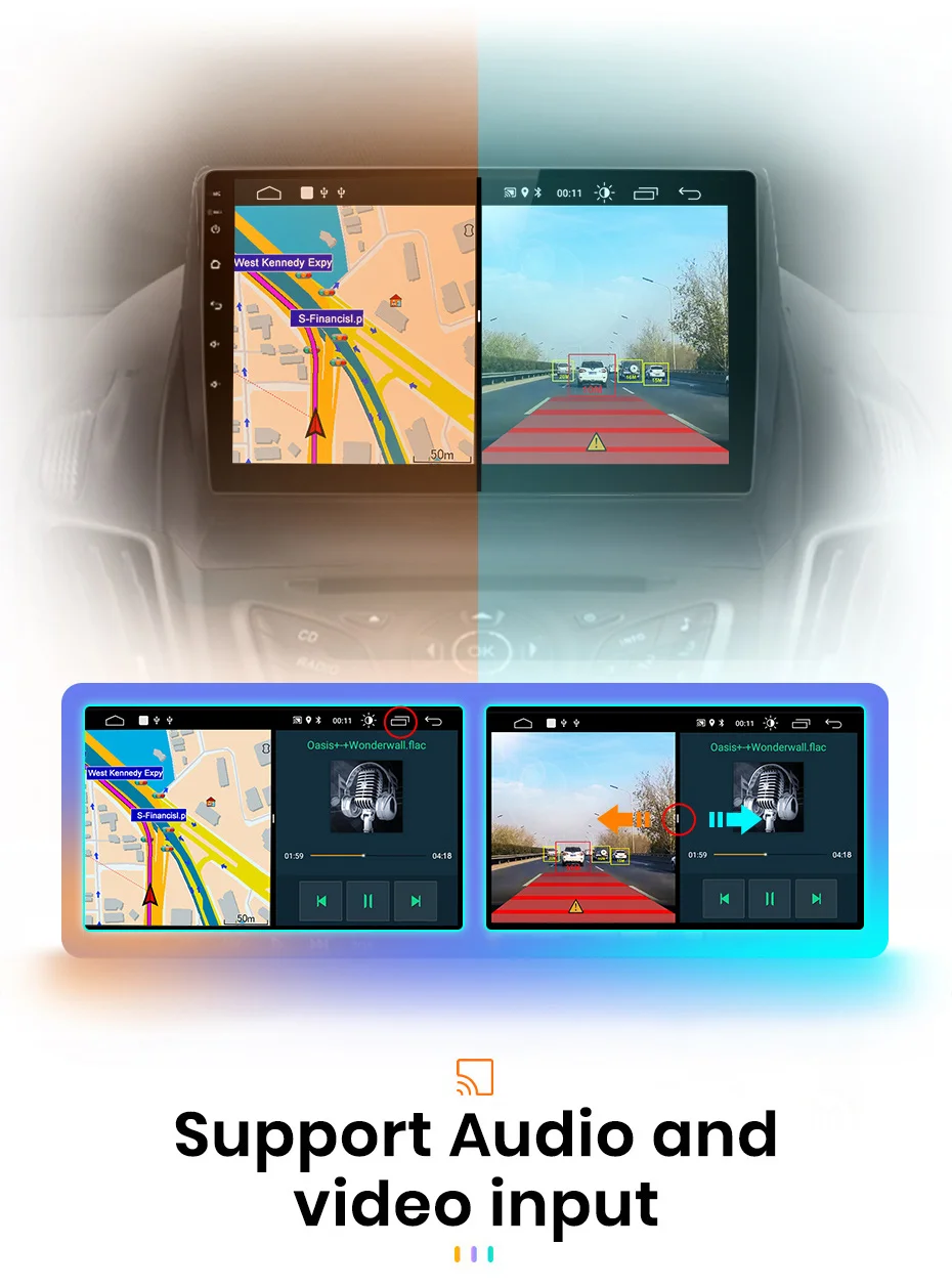 Вы можете использовать навигацию и другие приложения одновременно, такие как прослушивание музыки или включение функций ADAS и т. Д.