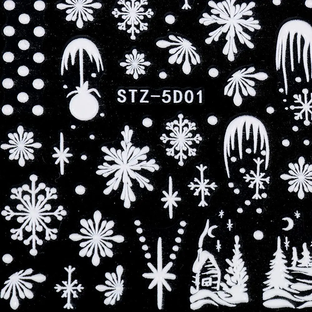 1 шт. 5D Белые снежинки рельефные наклейки для ногтей Рождество Нов...