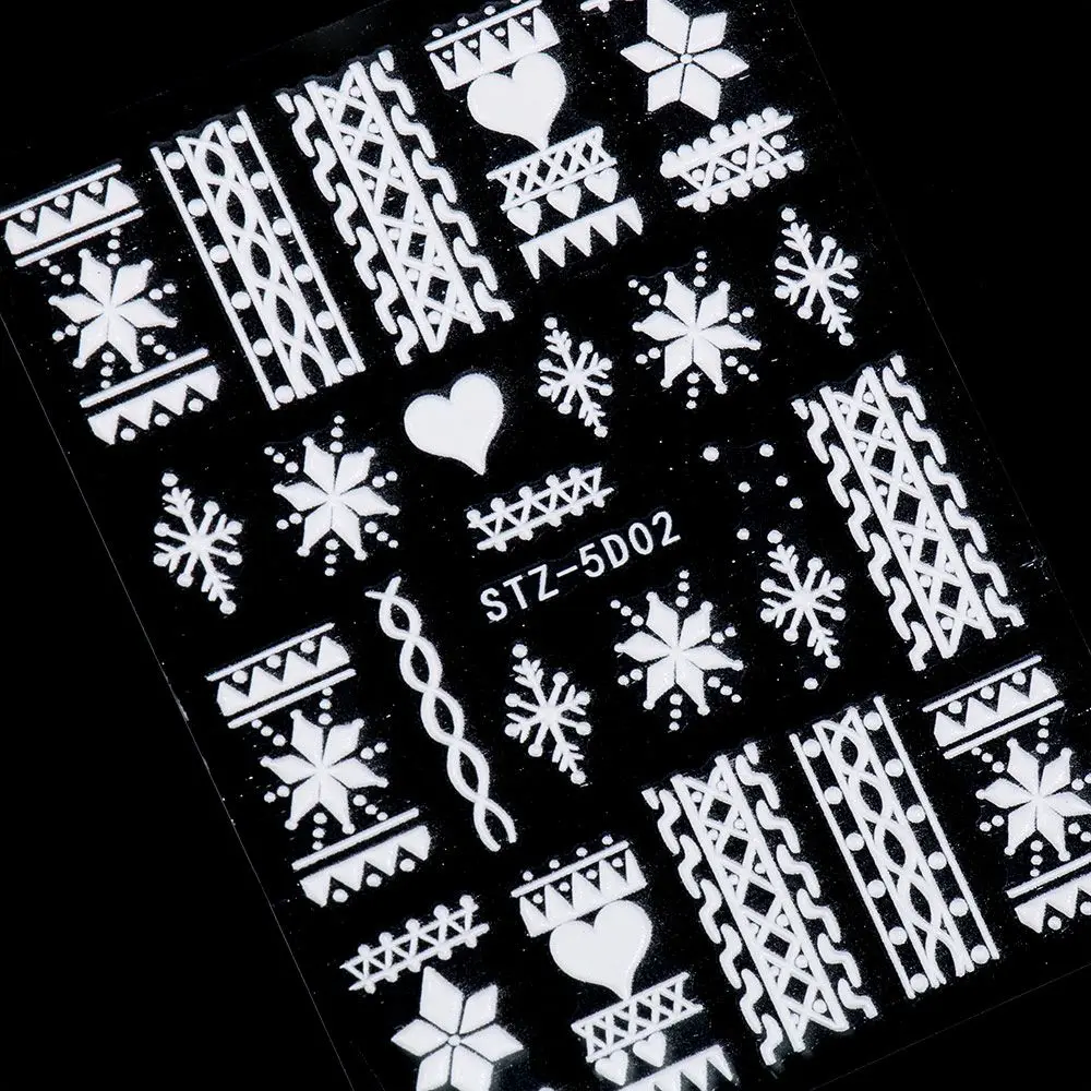 5D Белые снежинки, тисненые наклейки для ногтей, Рождество, Новый Год, дизайн ногтей, зимние подвески, цветок, маникюр, слайдеры, наклейки, Новинка