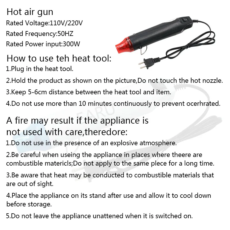 Тепловая пушка с европейской и американской вилкой, 110 В, 220 В, электроинструмент сделай сам с использованием термоусадочной трубки горячего воздуха 300 Вт с подставкой для сиденья