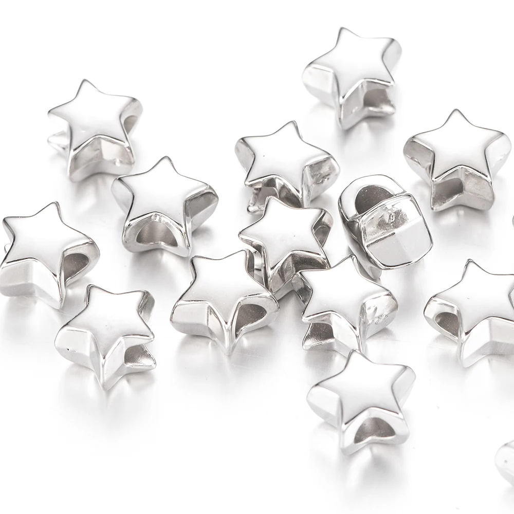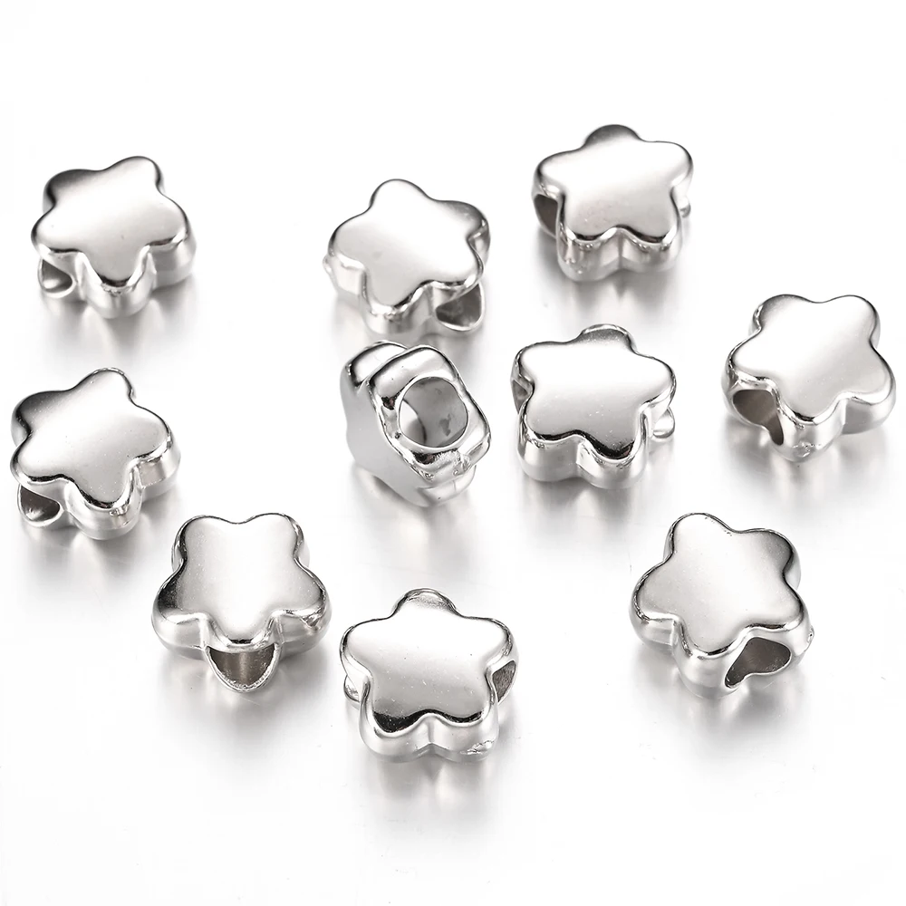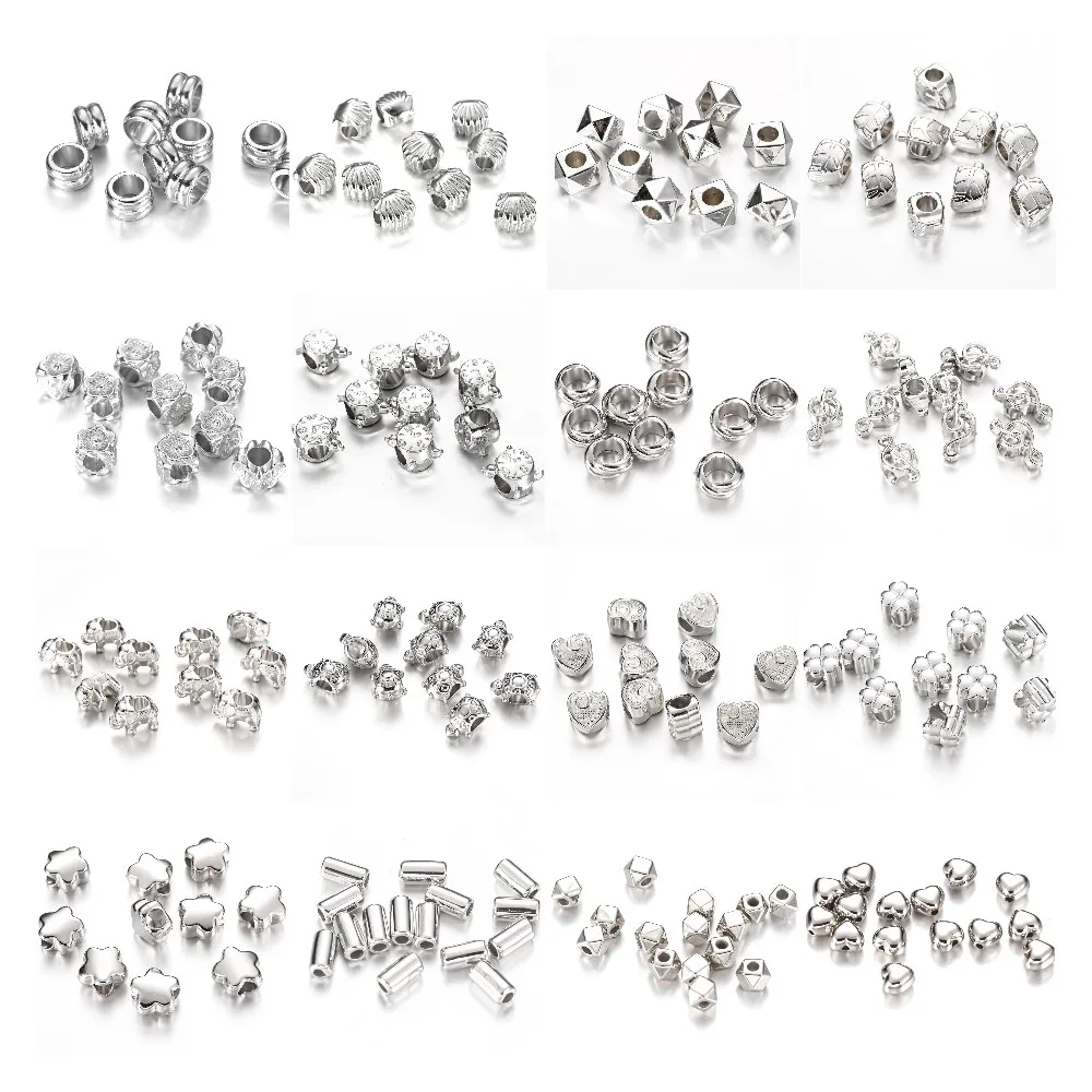 Бусины-разделители серебристого цвета CCB, металлическая пластина, круглые бусины с сердечками и звездами для изготовления ювелирных изделий, аксессуары для браслетов сделай сам, 30 шт.