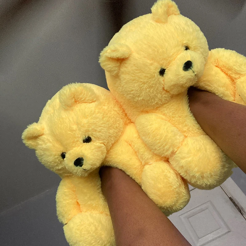 Горячие женские очаровательные наивные плюшевые теплые хлопковые тапочки для влюбленных Досуг пушистый Мишка сланцы Мультяшные креативные шлепанцы