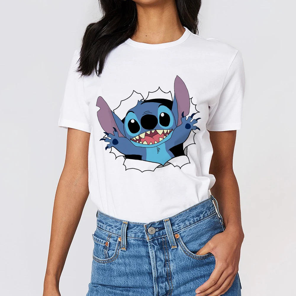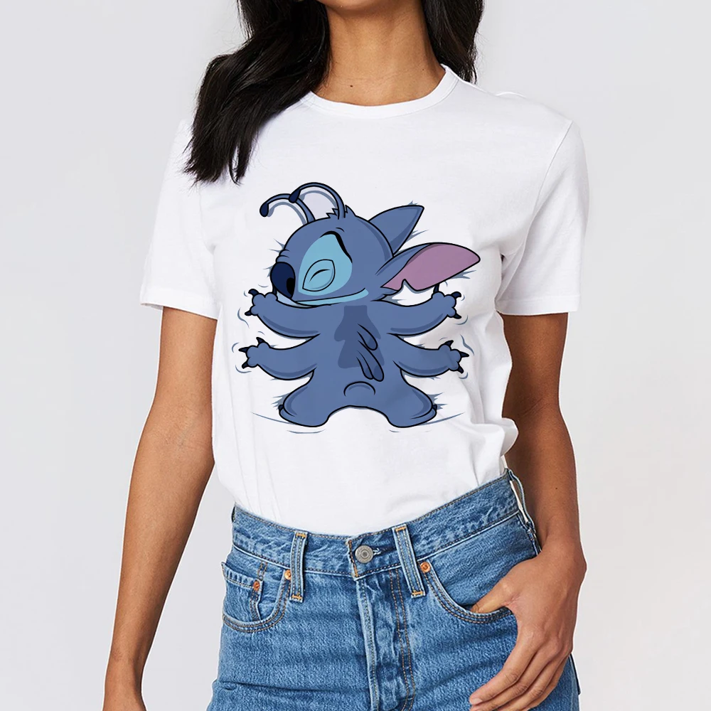 Футболка Lilo Stitch с мультяшным рисунком, женский топ, корейская ...