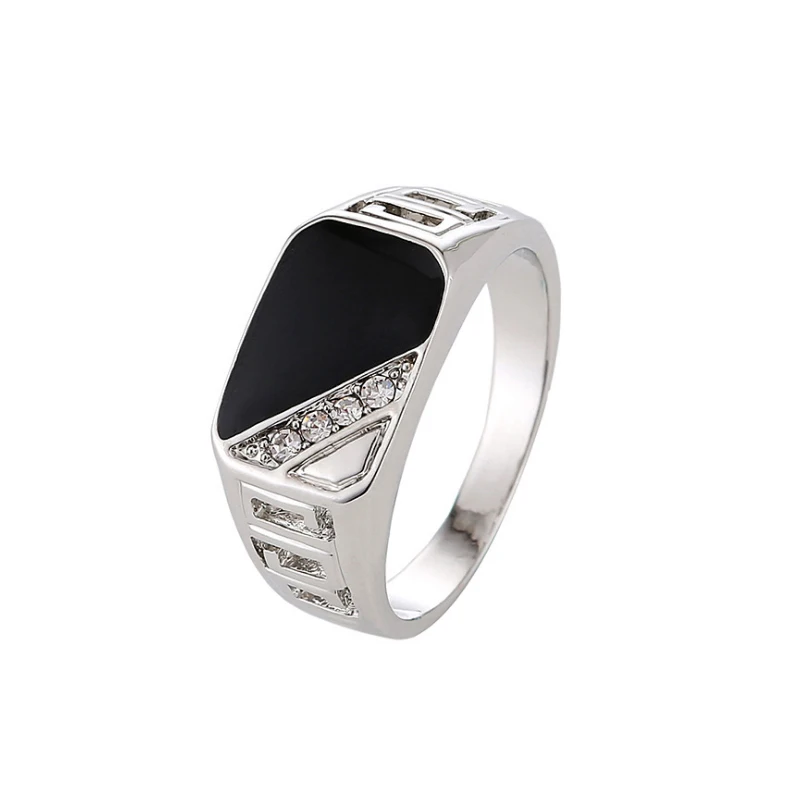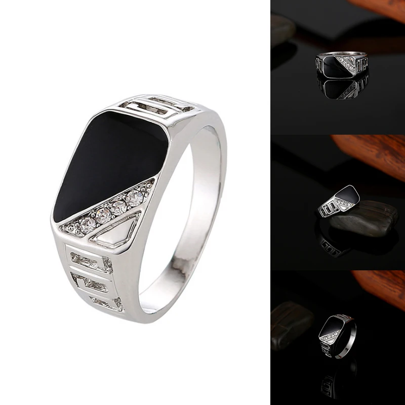 Мужское кольцо Стразы, новая мода, Размер 7-12, классические золотистые мужские кольца на палец с черной эмалью, ювелирные изделия в подарок